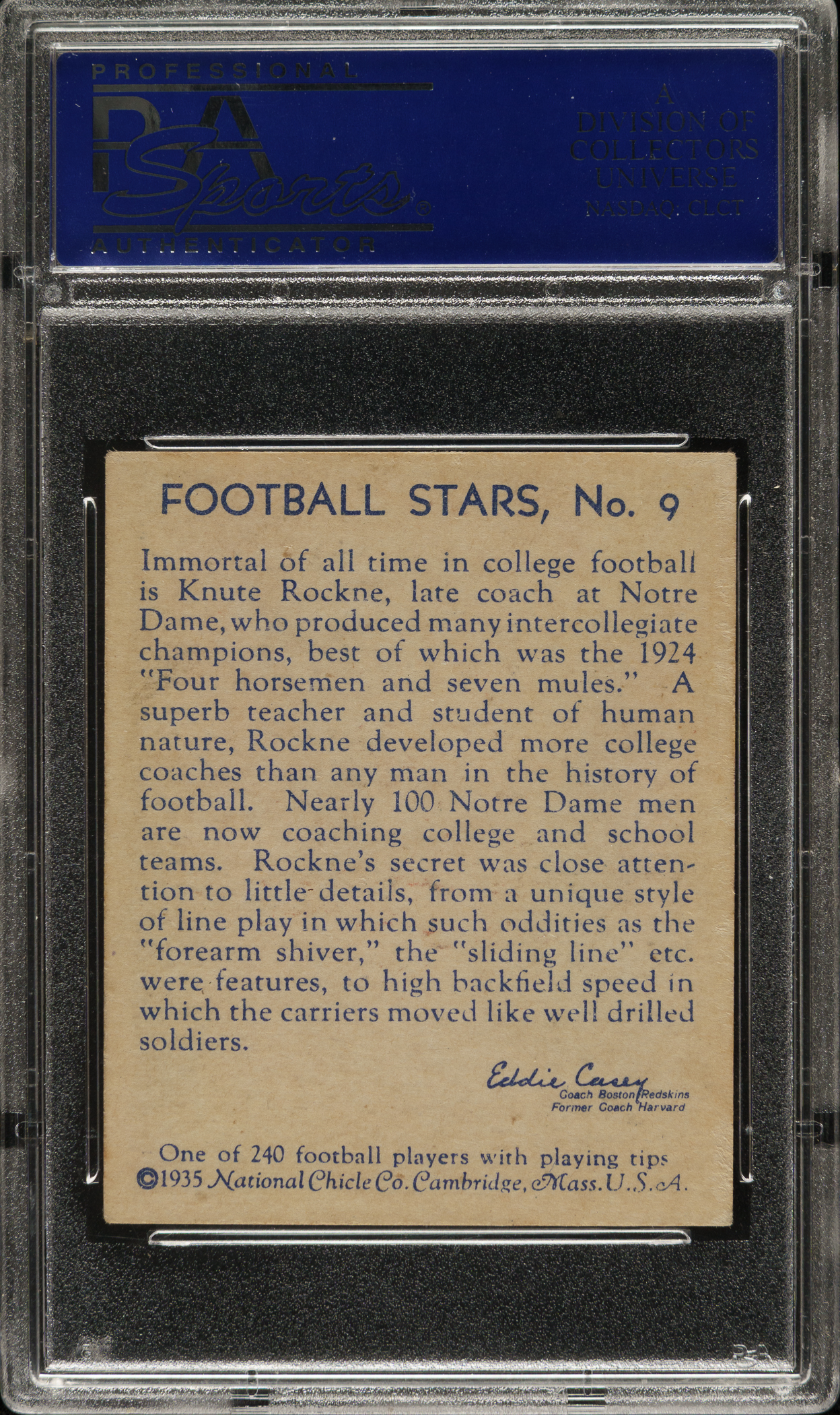 Graded EX 5 by PSA. Notre Dame football Hall of Famer Knute Rockne.
