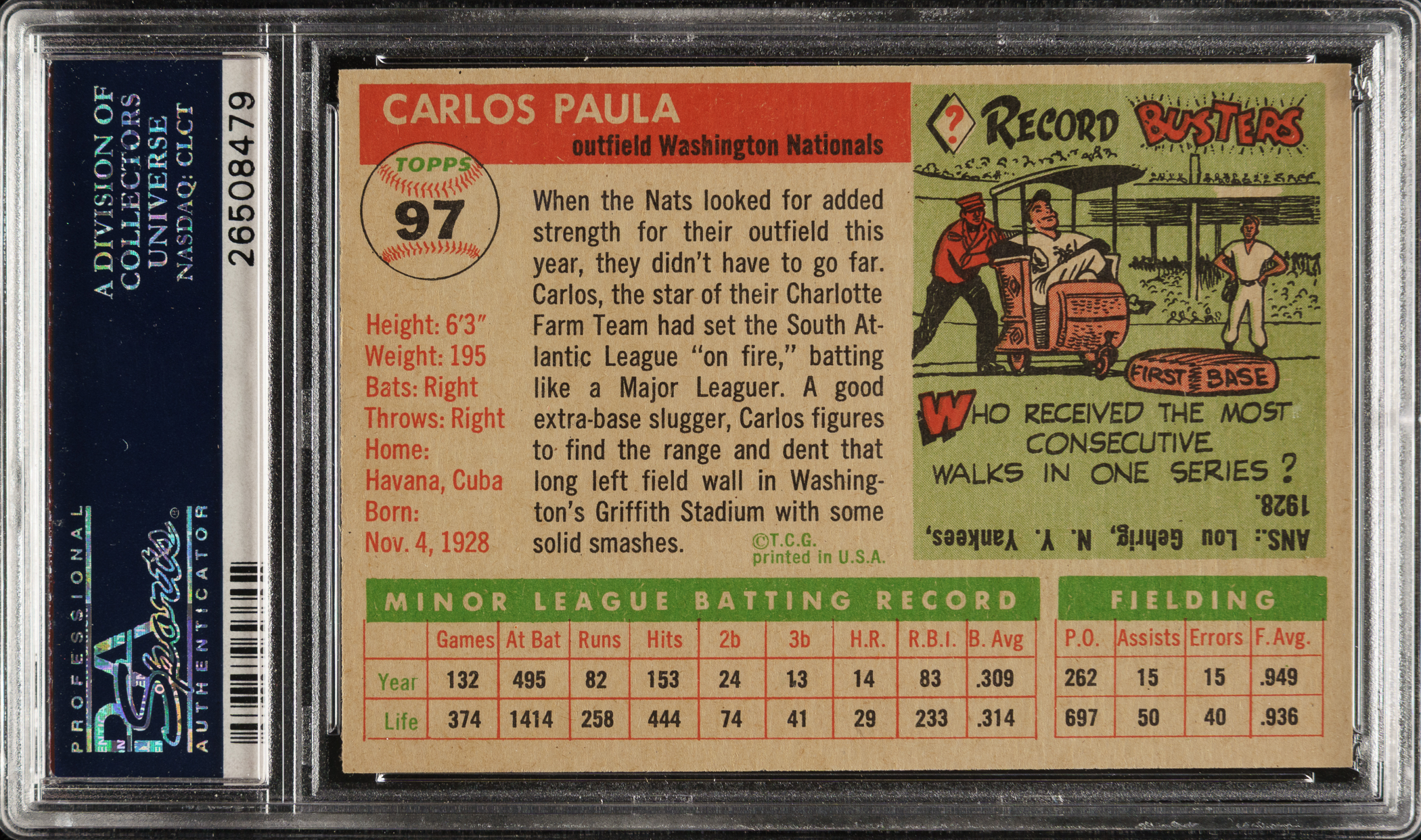 Graded MINT 9 by PSA. Carlos Paula of the Washington Senators.