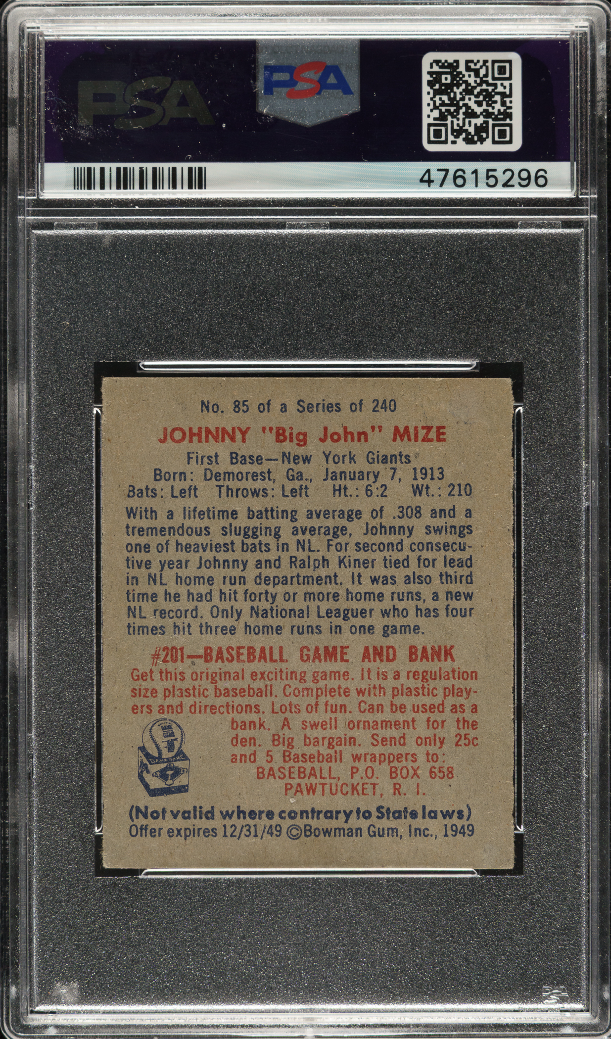 Graded EX 5 by PSA. New York Giants Hall of Famer Jonny Mize.