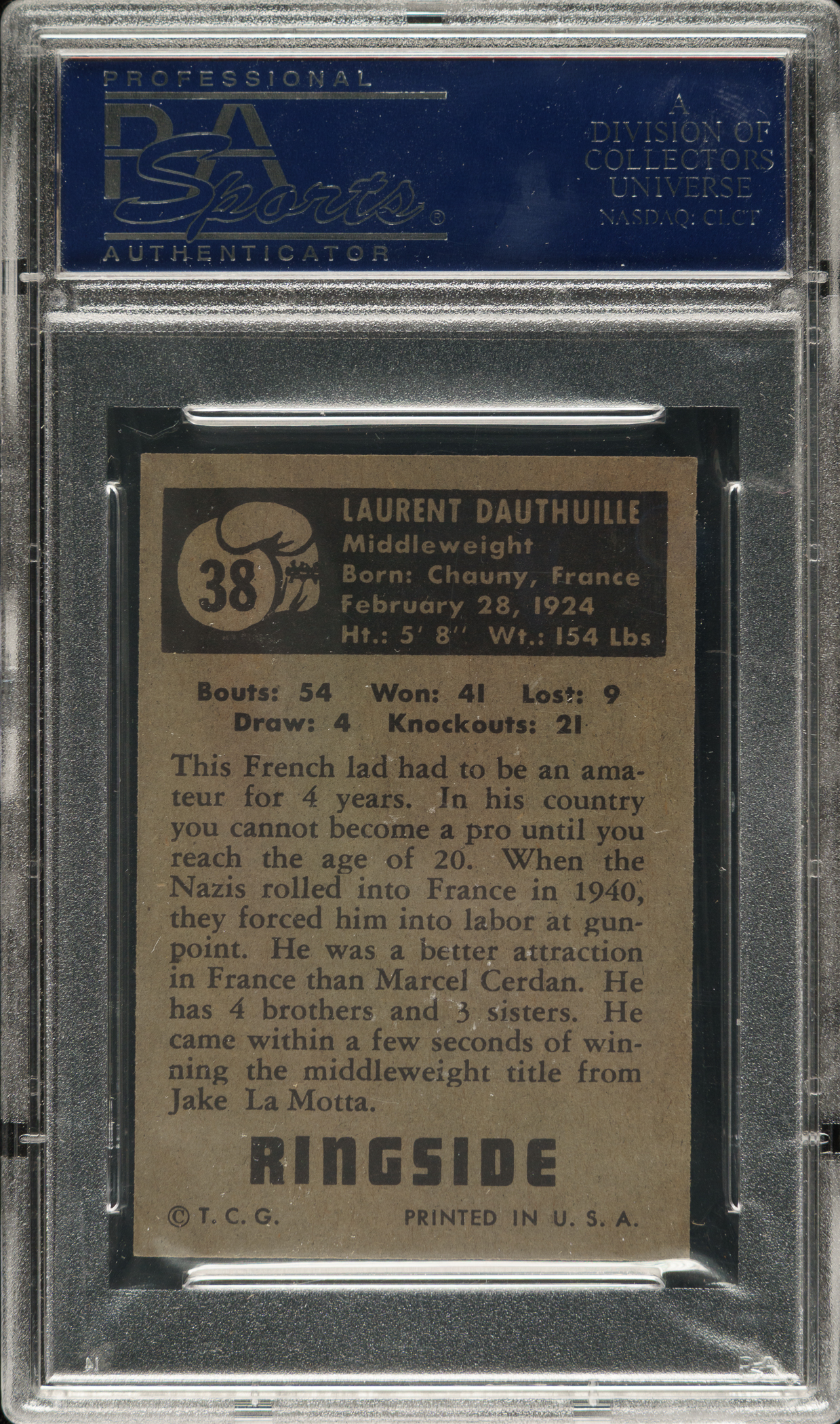 Lot # 4112: 1951 Topps Ringside Boxing #38 Laurent Dauthuille PSA NM-MT 8