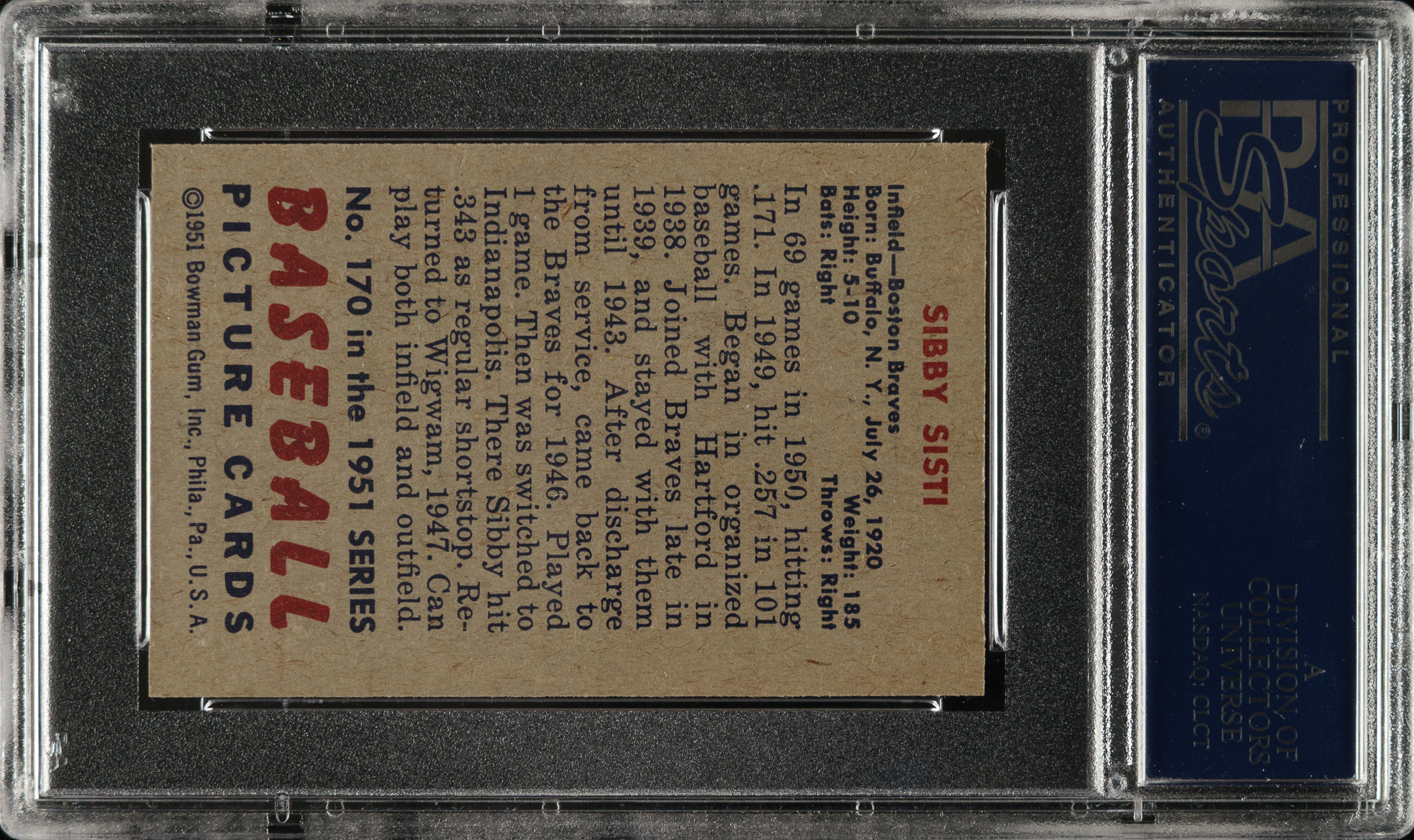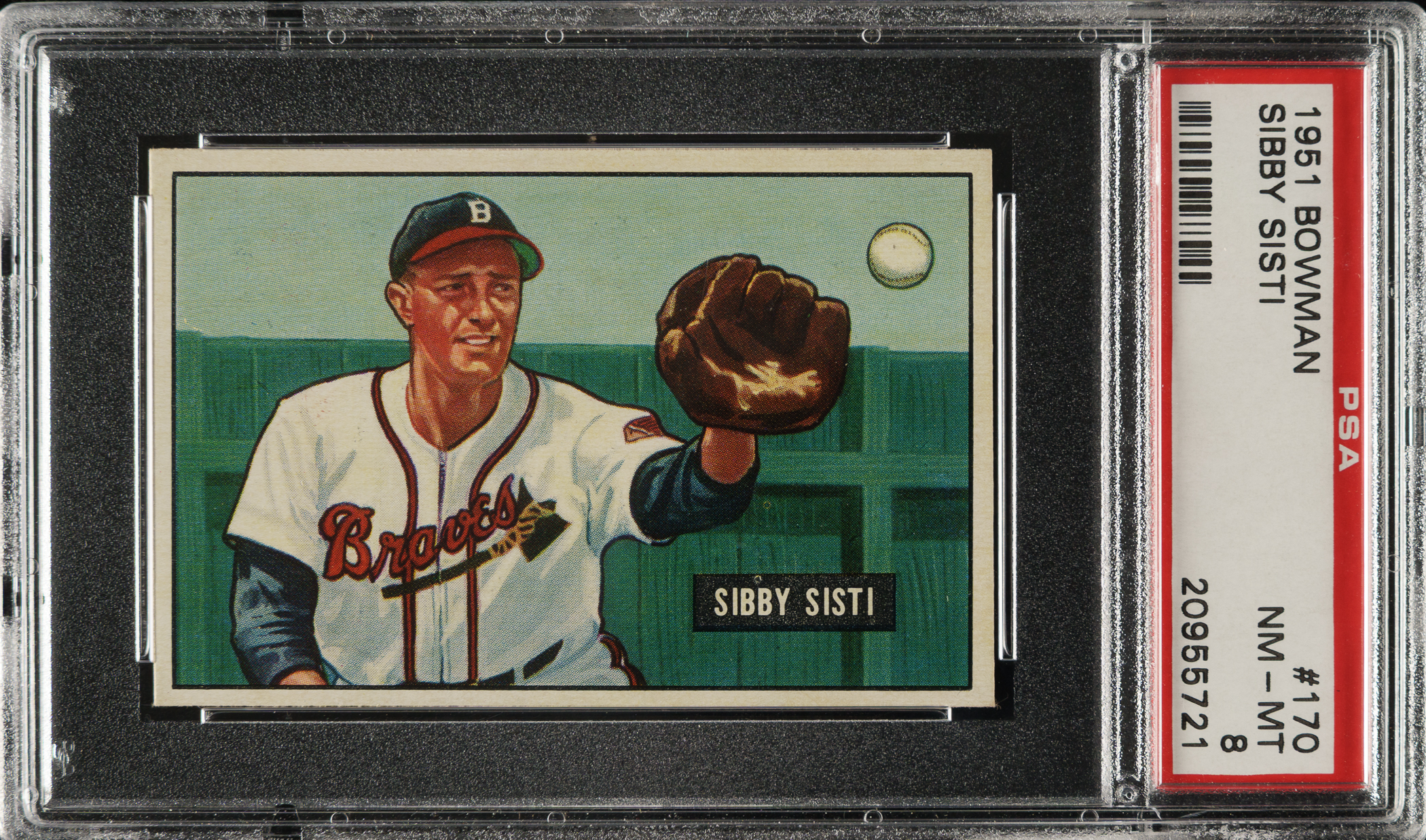 Lot # 2412: 1951 Bowman #170 Sibby Sisti PSA NM-MT 8