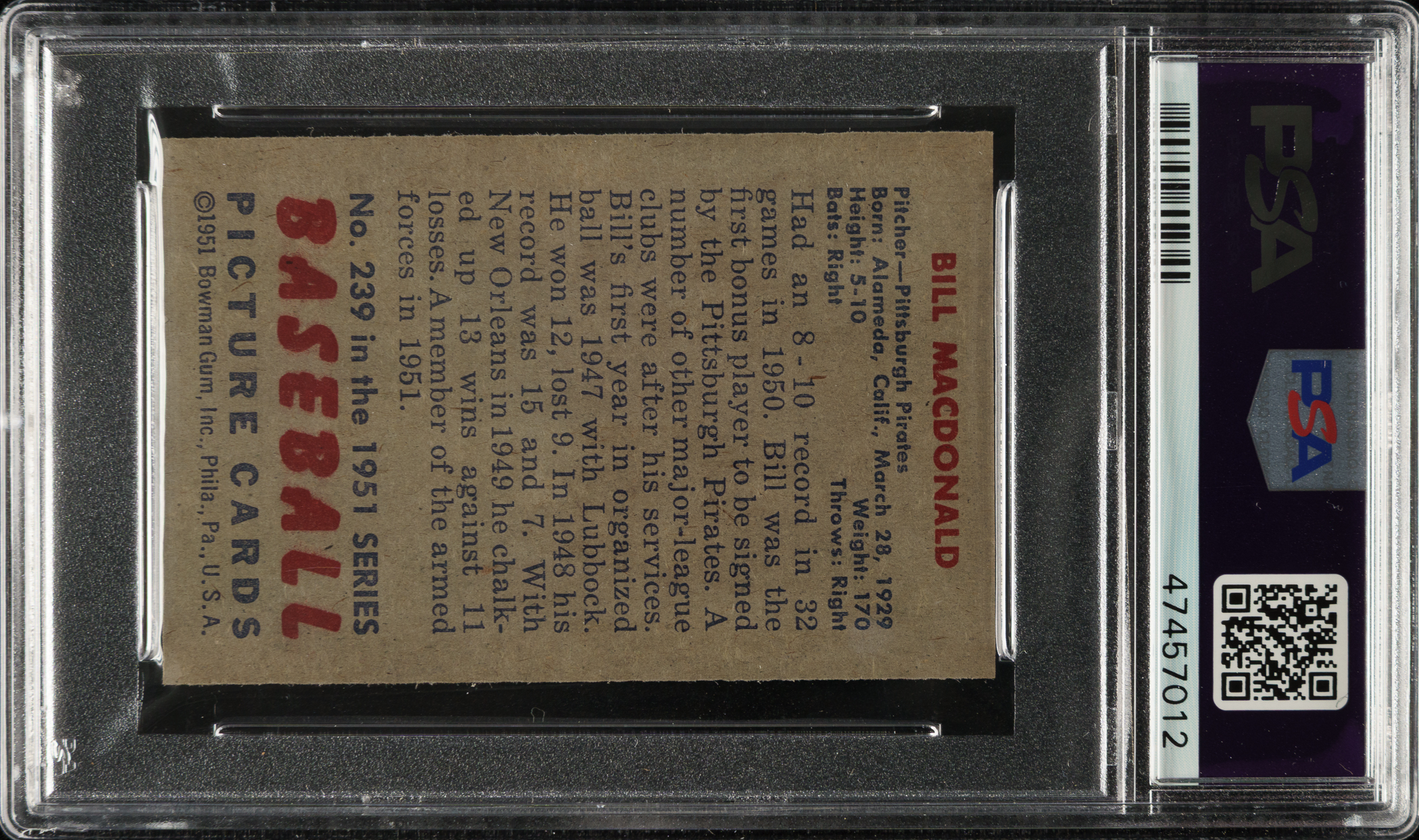 Lot # 2449: 1951 Bowman #239 Bill Macdonald PSA NM-MT 8