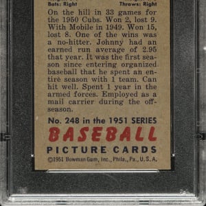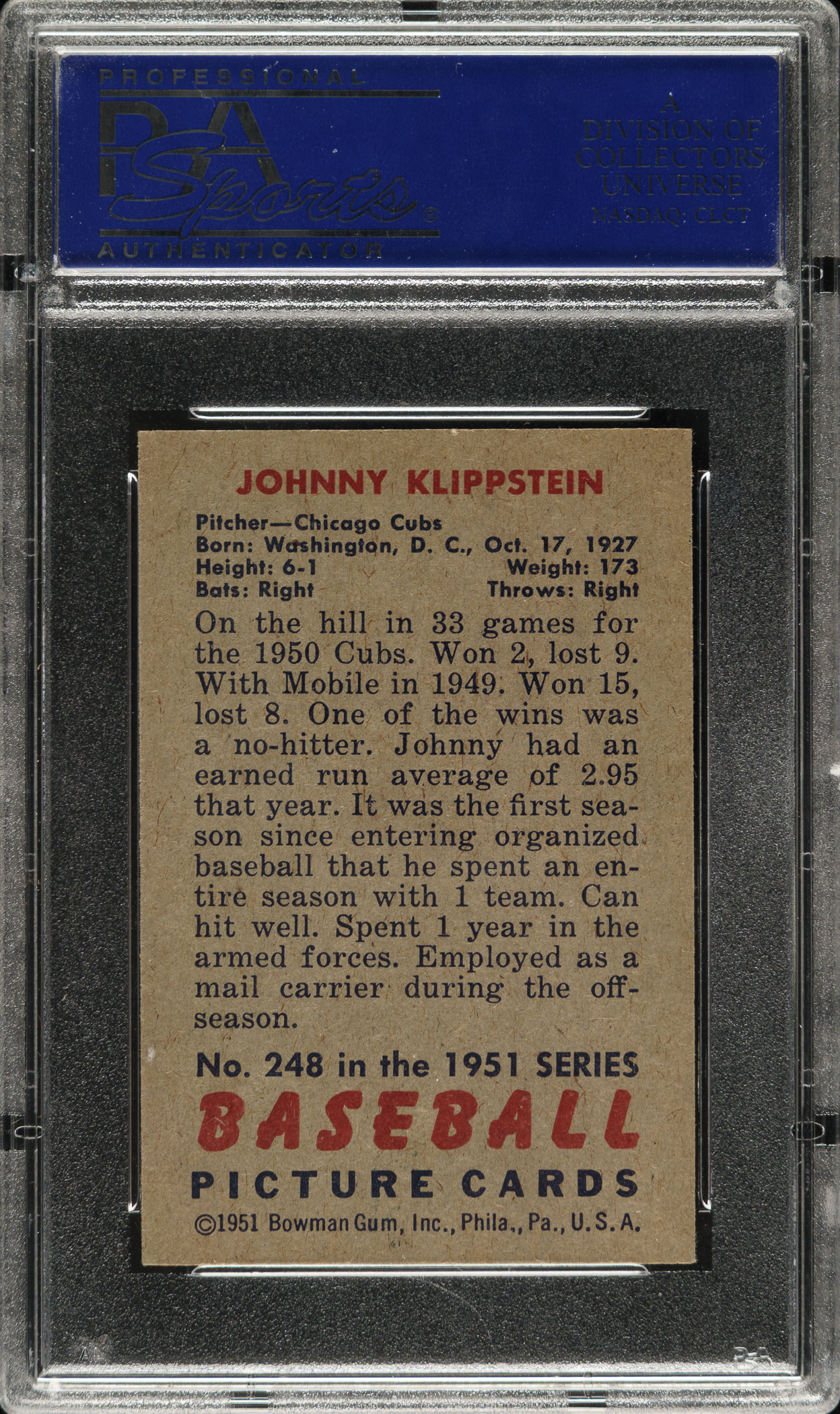 Lot # 2455: 1951 Bowman #248 Johnny Klippstein PSA NM-MT 8