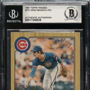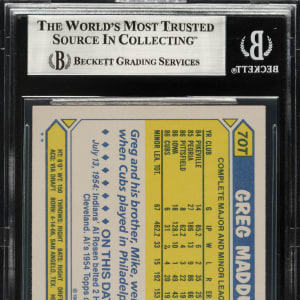 Beckett has encapsulated the card, grading the signature Authentic. Chicago Cubs Hall of Famer Greg Maddux.