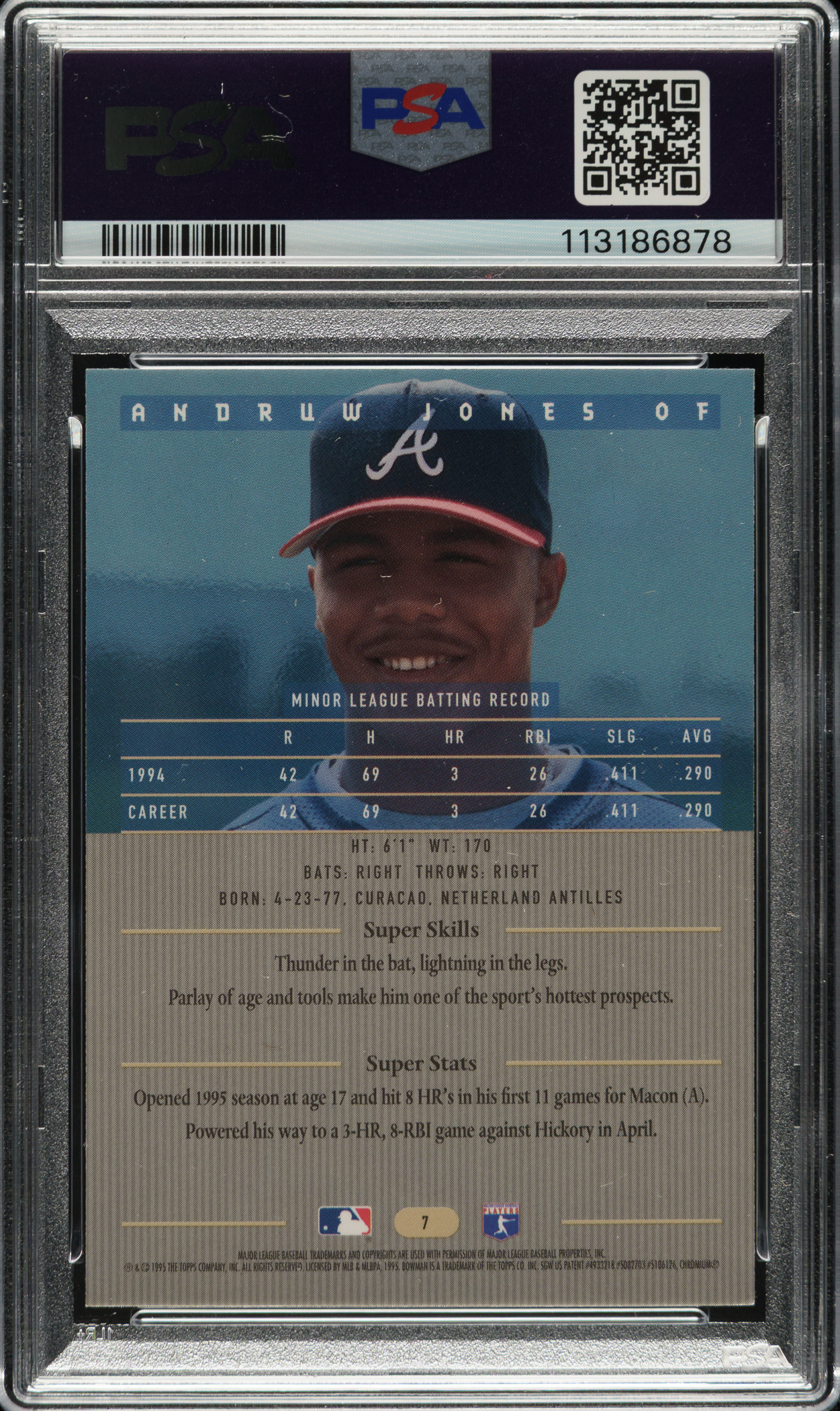 PSA/DNA has encapsulated the card, grading the signature GEM MINT 10 and the card EX-MT 6. Atlanta Braves.