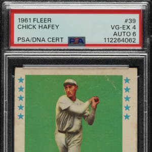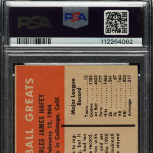 PSA/DNA has encapsulated the card, grading the signature EX-MT 6 and the card VG-EX 4. St. Louis Cardinals Hall of Famer Chick Hafey.