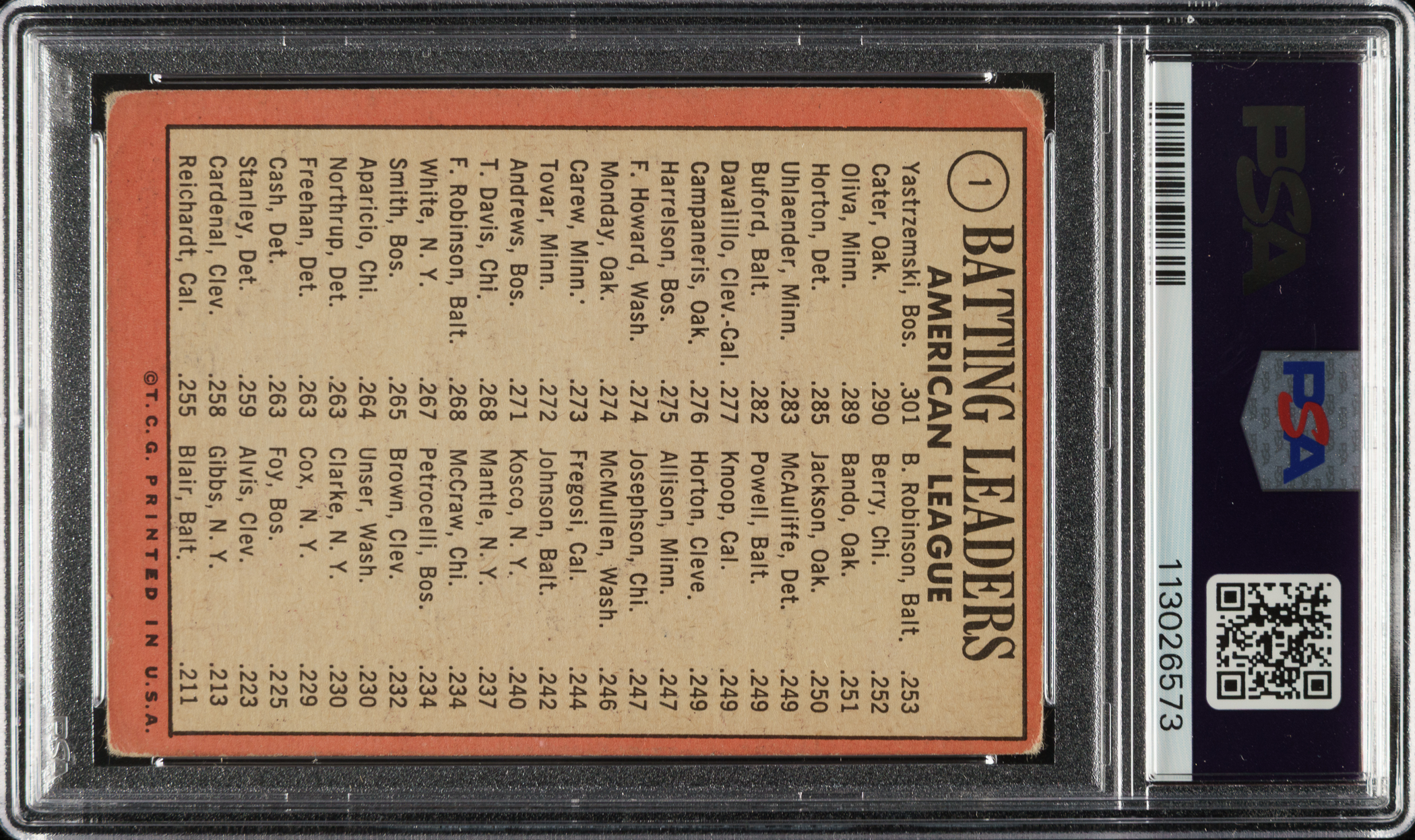 PSA/DNA has encapsulated the card, grading the signatures GEM MINT 10 and the card GOOD 2. Boston Red Sox and Minnesota Twins Hall of Famers Carl Yastrzemski and Tony Oliva.