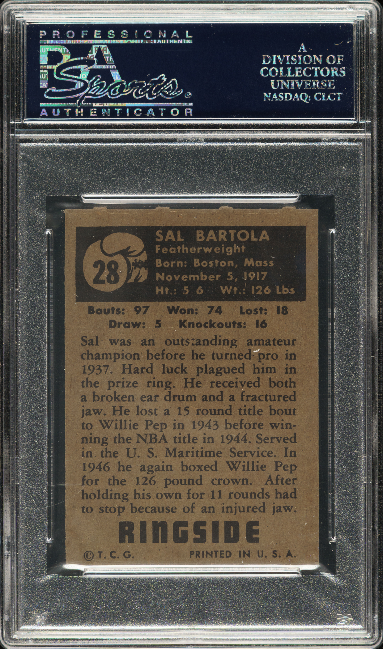 Lot # 4108: 1951 Topps Ringside Boxing #28 Sal Bartolo PSA NM 7