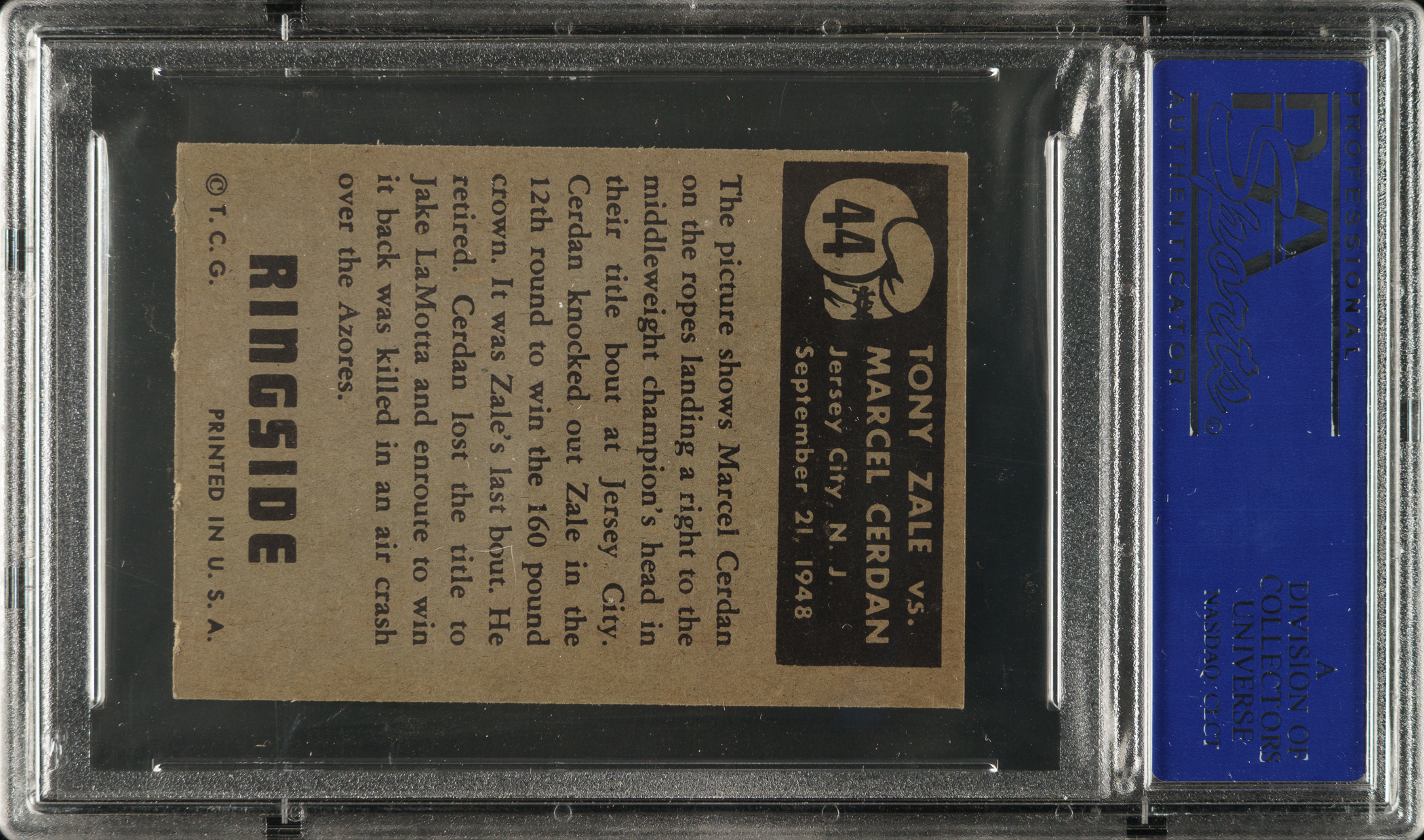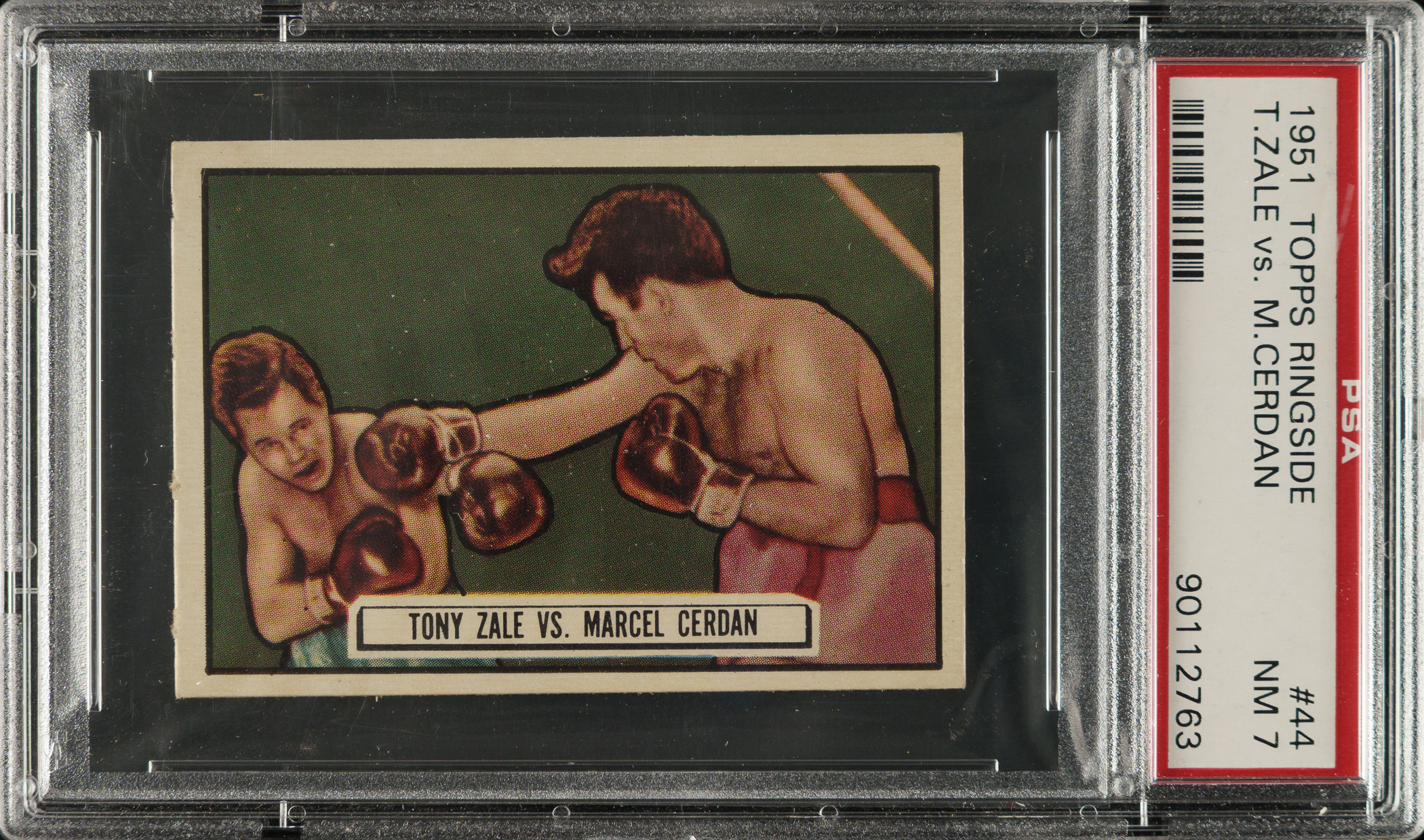 Graded NM 7 by PSA. Boxing Hall of Famers Tony Zale and Marcel Cerdan.
