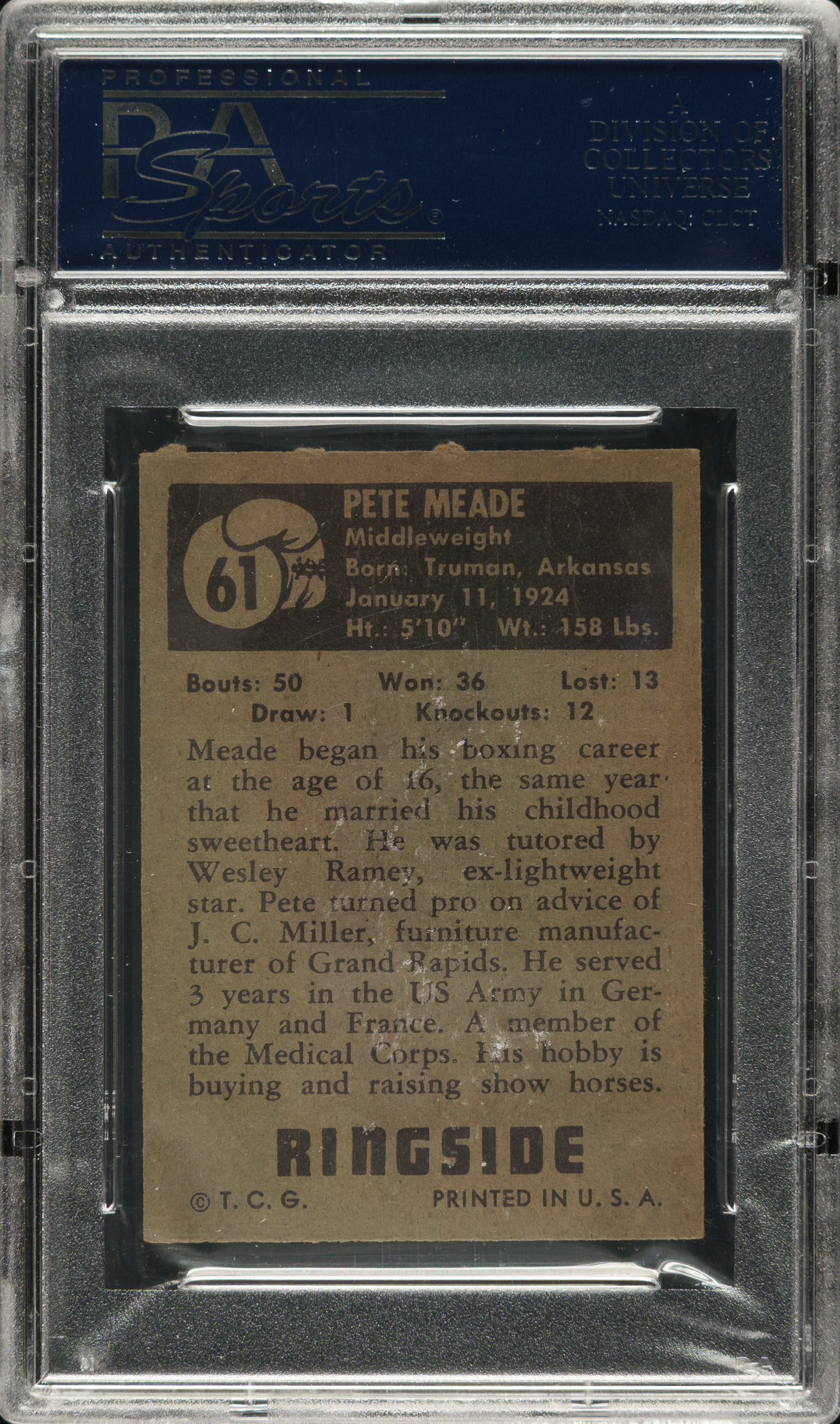 Lot # 4123: 1951 Topps Ringside Boxing #61 Pete Mead PSA NM 7