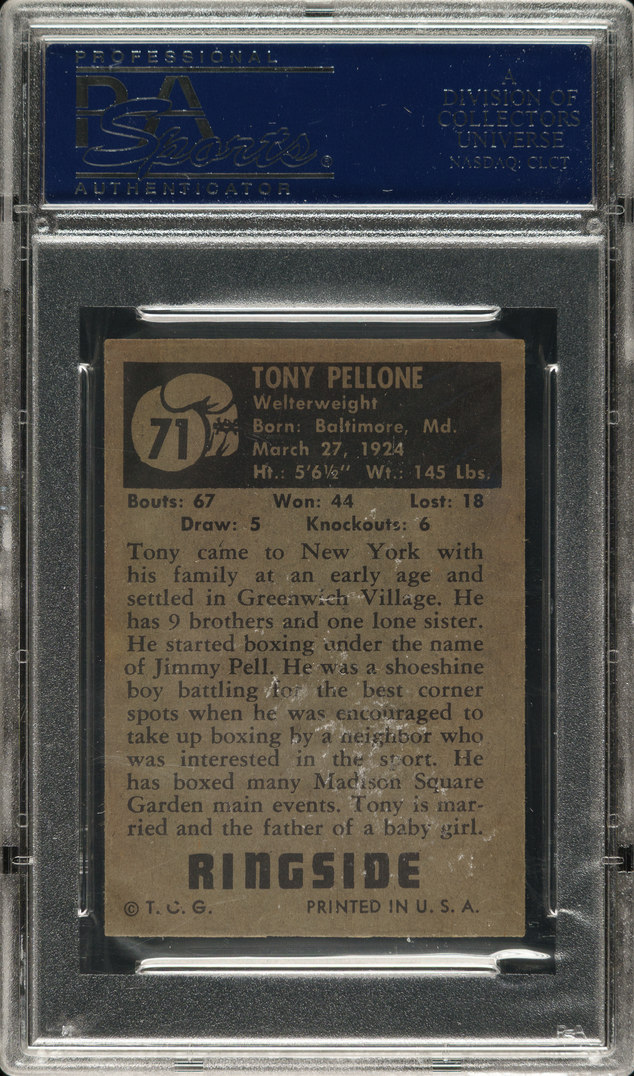 Lot # 4131: 1951 Topps Ringside Boxing #71 Tony Pellone PSA NM 7