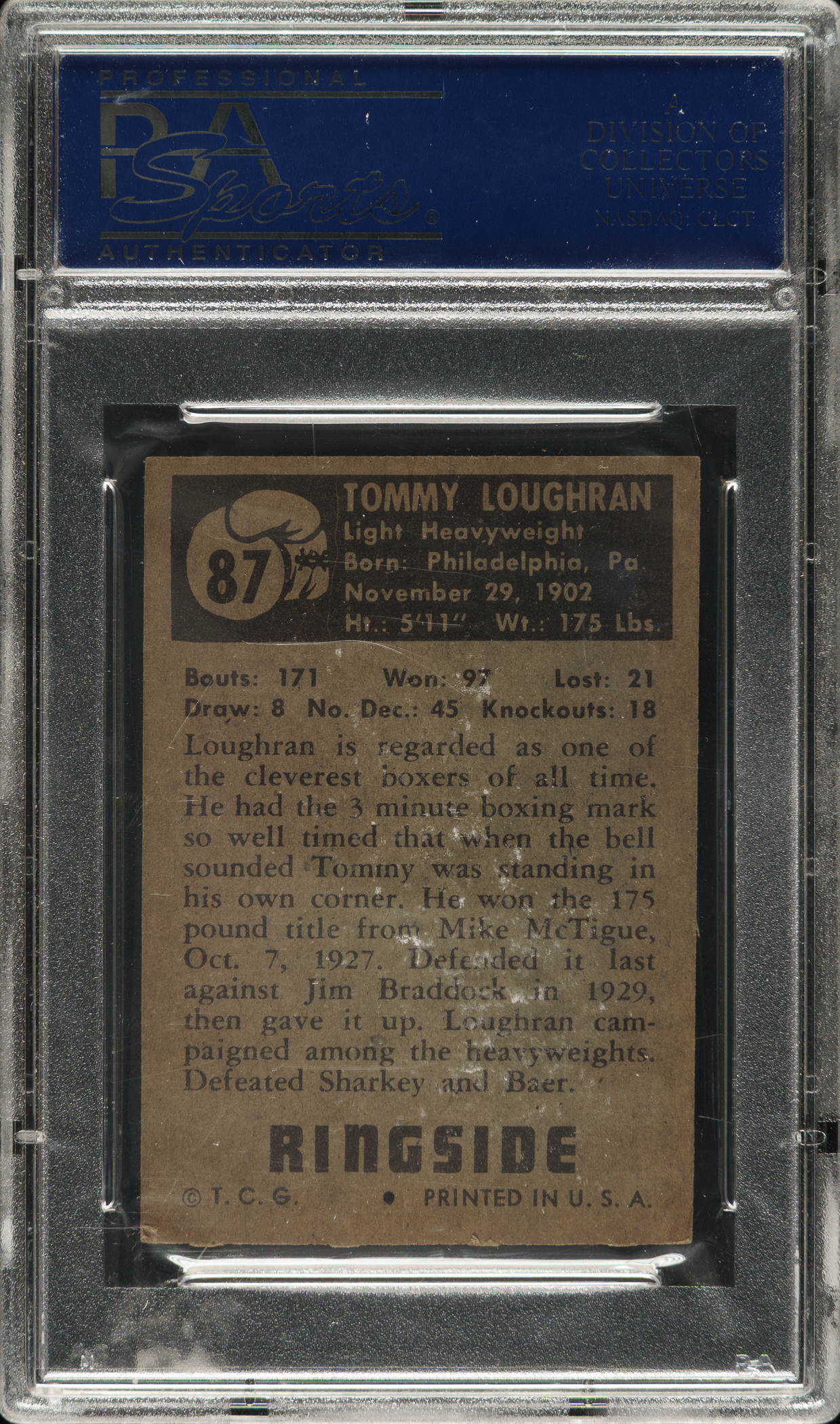 Graded NM 7 by PSA. Boxing Hall of Famer Tommy Loughran.