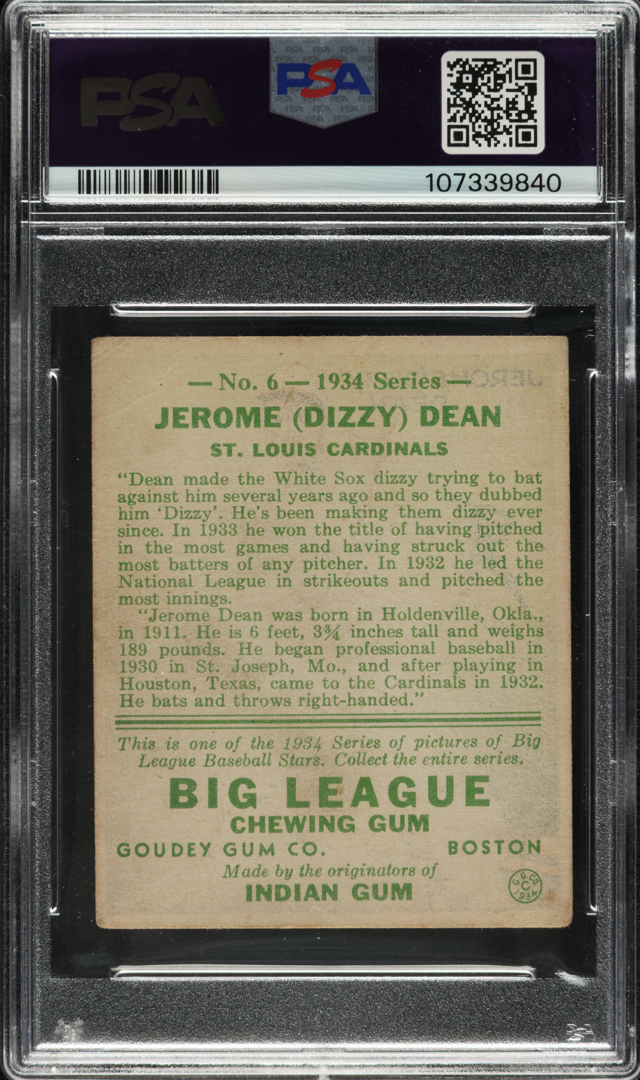 Graded POOR 1 by PSA. St. Louis Cardinals Hall of Famer Dizzy Dean.