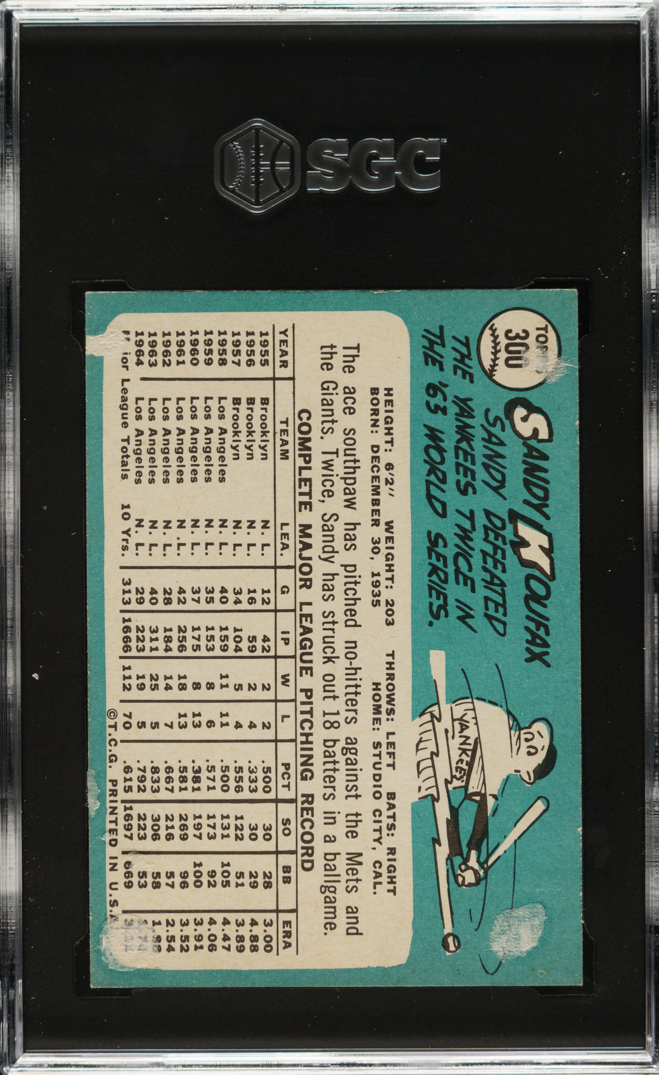Graded FAIR 1.5 by SGC. Los Angeles Dodgers Hall of Famer Sandy Koufax.