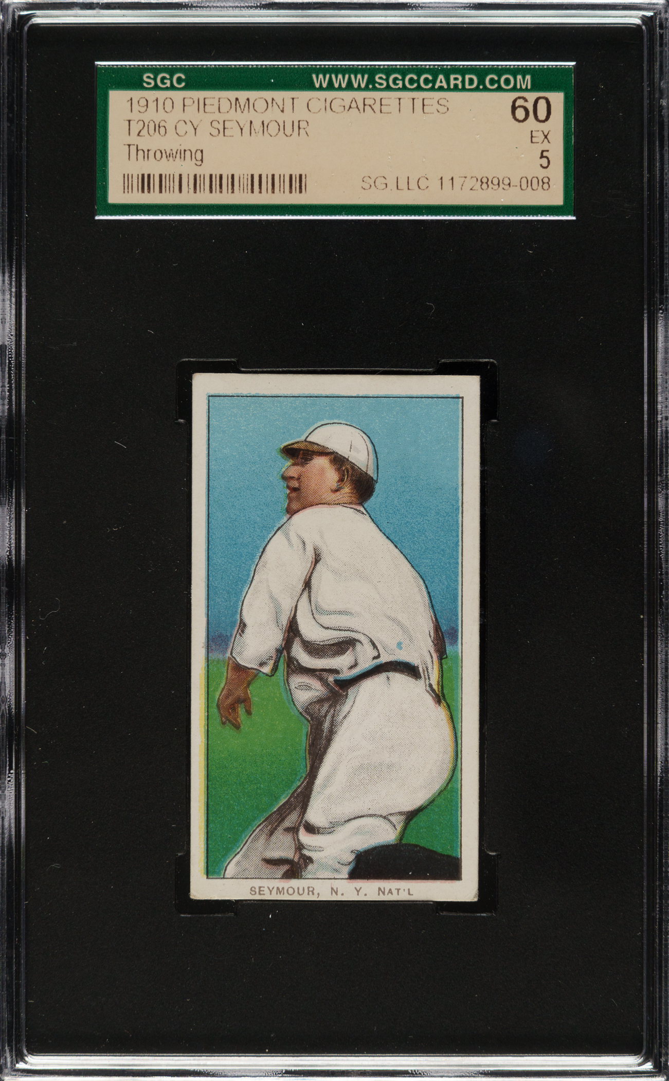 Lot # 1200: 1909-1911 T206 White Border Cy Seymour Throwing SGC EX 60