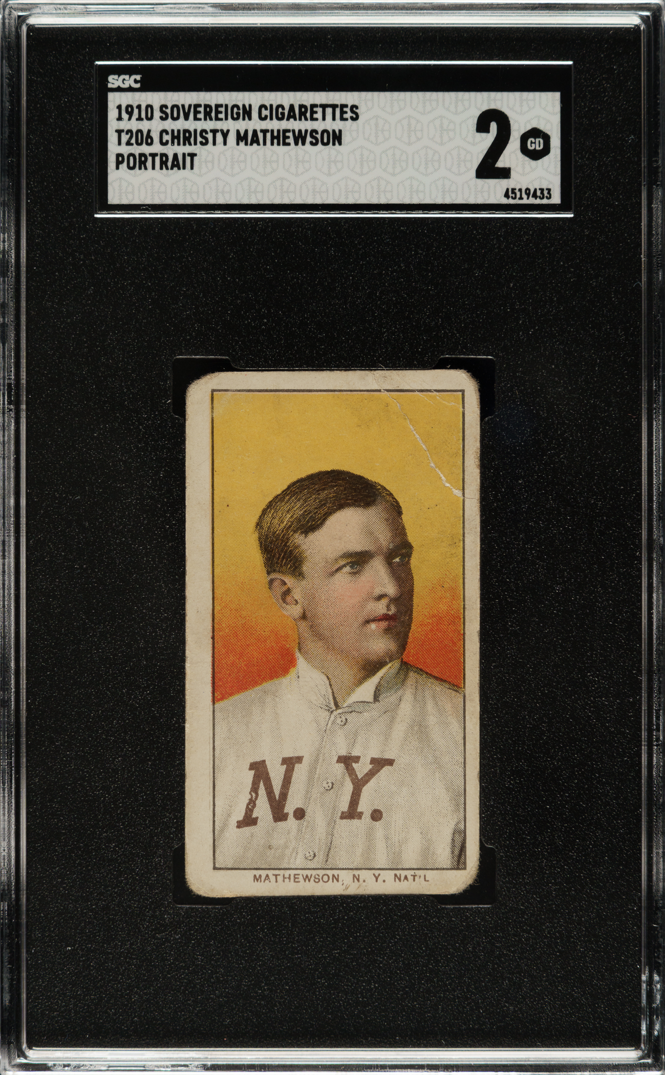 Lot # 901: 1909-1911 T206 White Border Christy Mathewson Portrait SGC GOOD 2 - Sovereign 350 Back