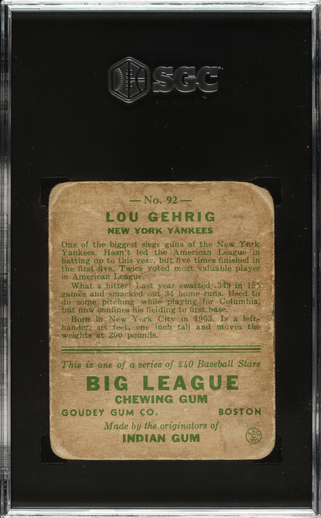 Graded POOR 1 by SGC. New York Yankees Hall of Famer Lou Gehrig.