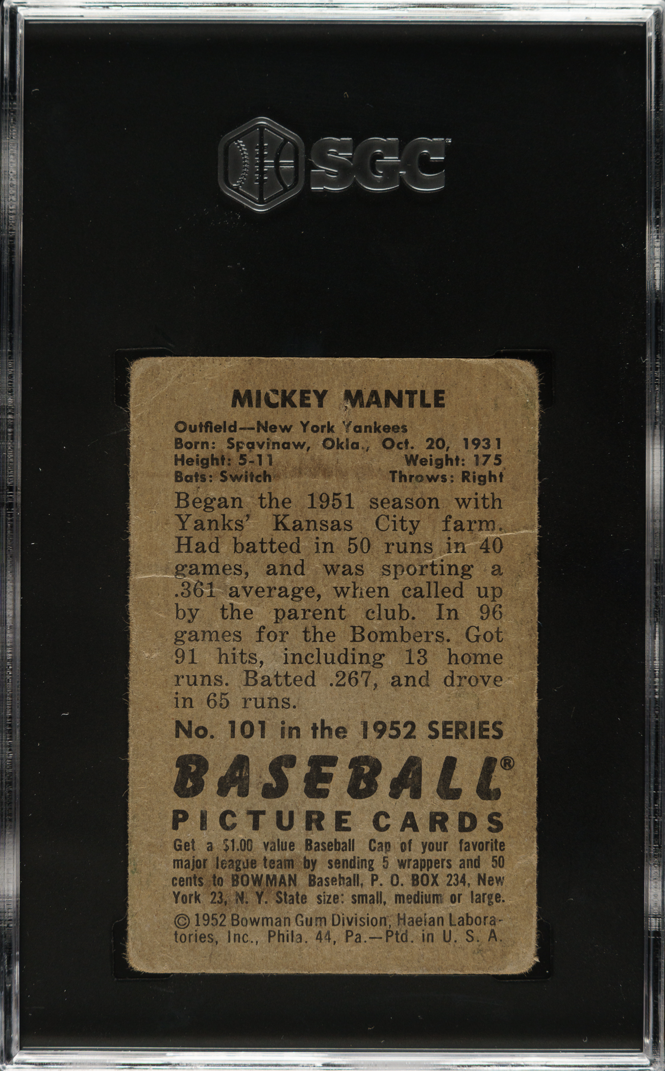 Graded POOR 1 by SGC. New York Yankees Hall of Famer Mickey Mantle.
