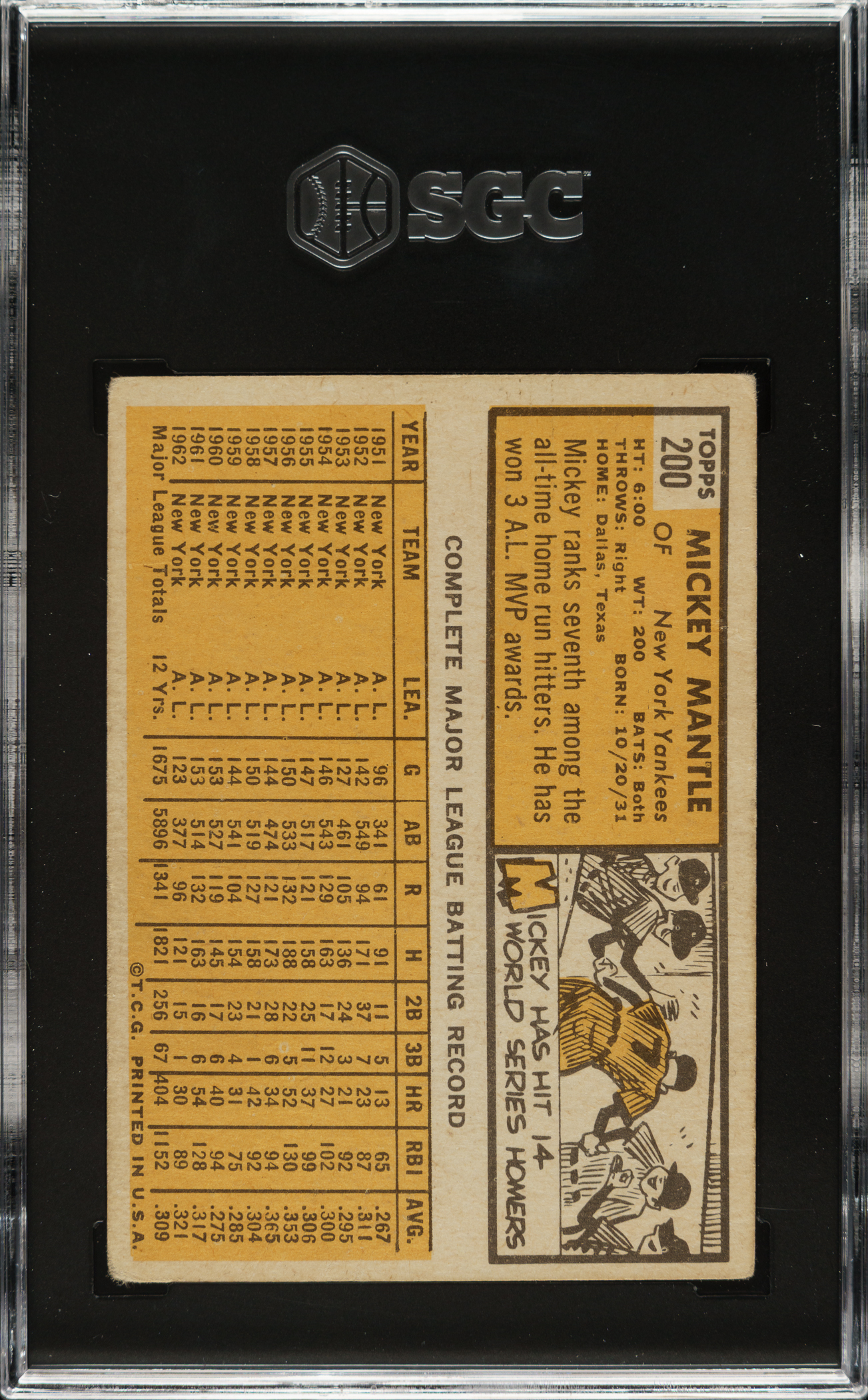 Lot # 2961: 1963 Topps #200 Mickey Mantle SGC GOOD+ 2.5