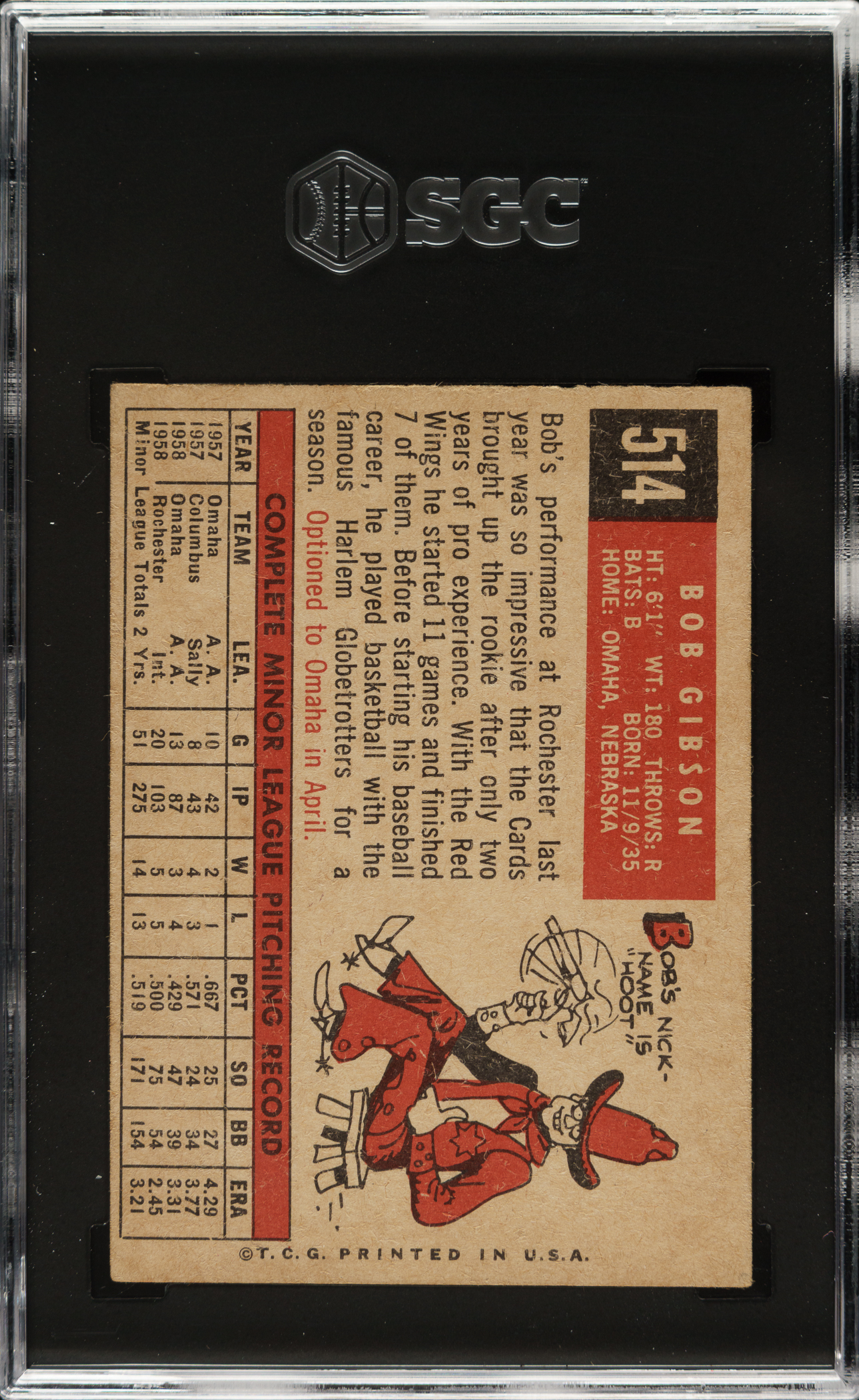 Graded FAIR 1.5 by SGC. St. Louis Cardinals Hall of Famer Bob Gibson.