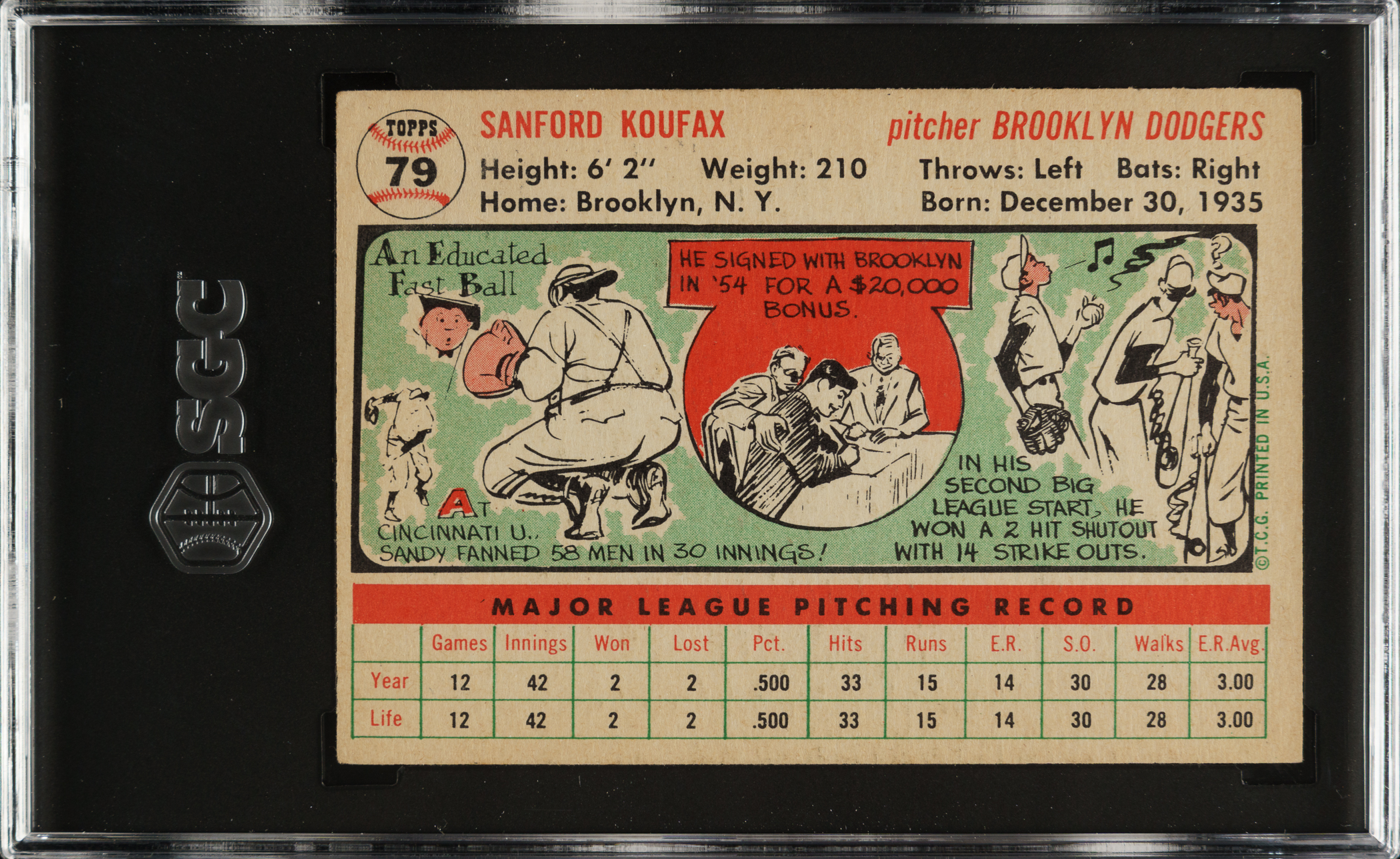 Lot # 2720: 1956 Topps #79 Sandy Koufax White Back SGC EX 5