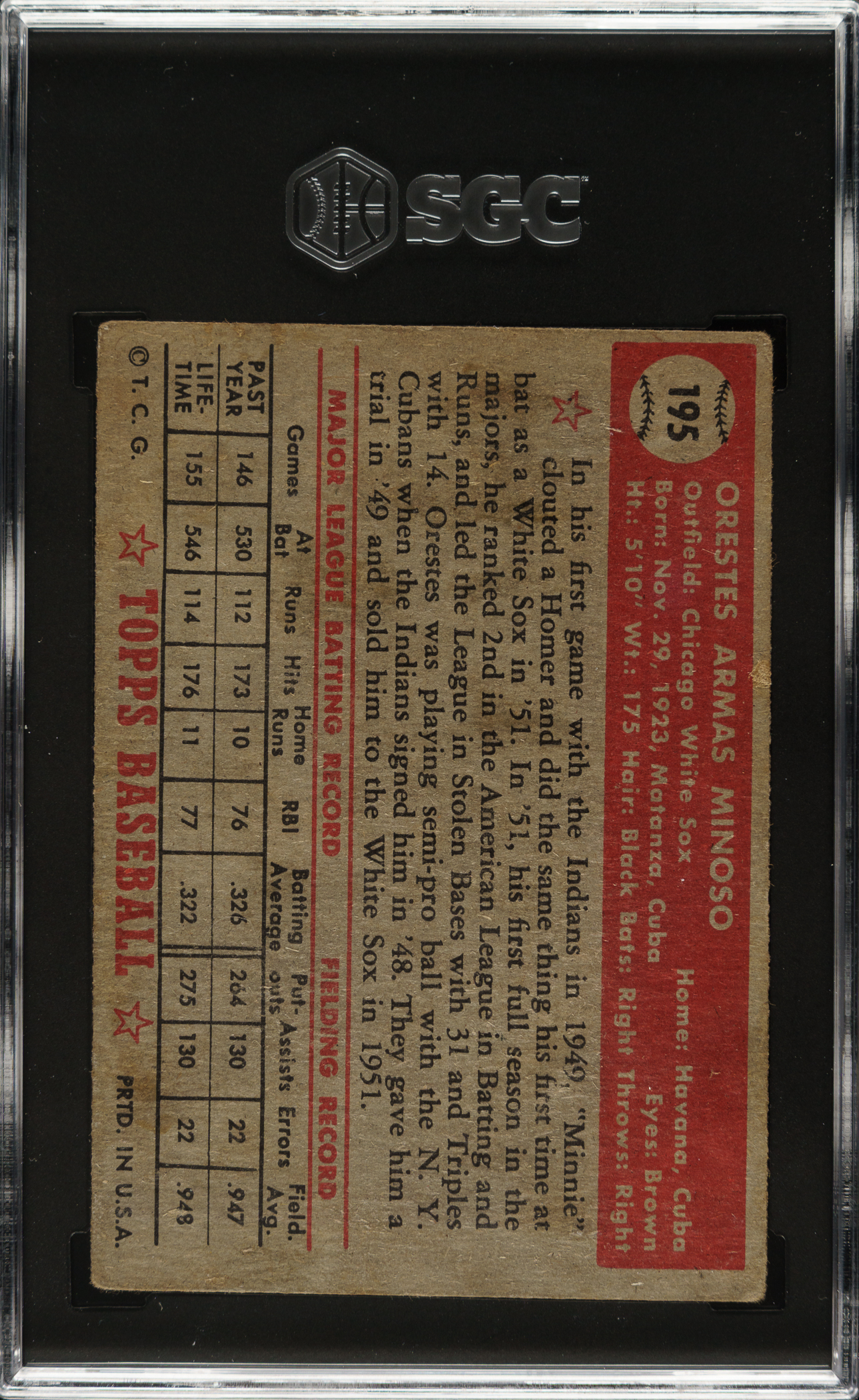 Graded GOOD 2 by SGC. Chicago White Sox Hall of Famer Minnie Minoso.