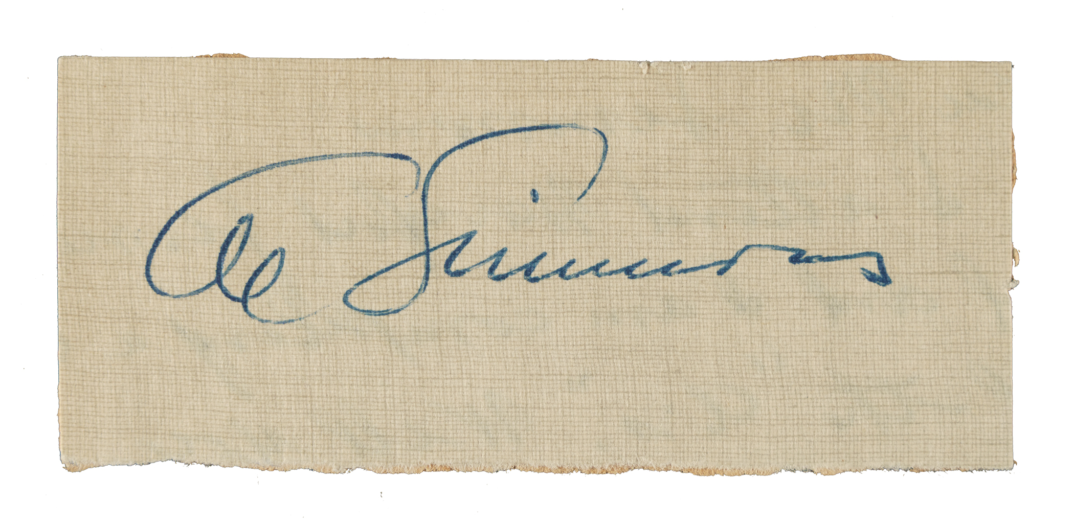 Chicago White Sox Hall of Famer Al Simmons. Auction LOA from James Spence/JSA.