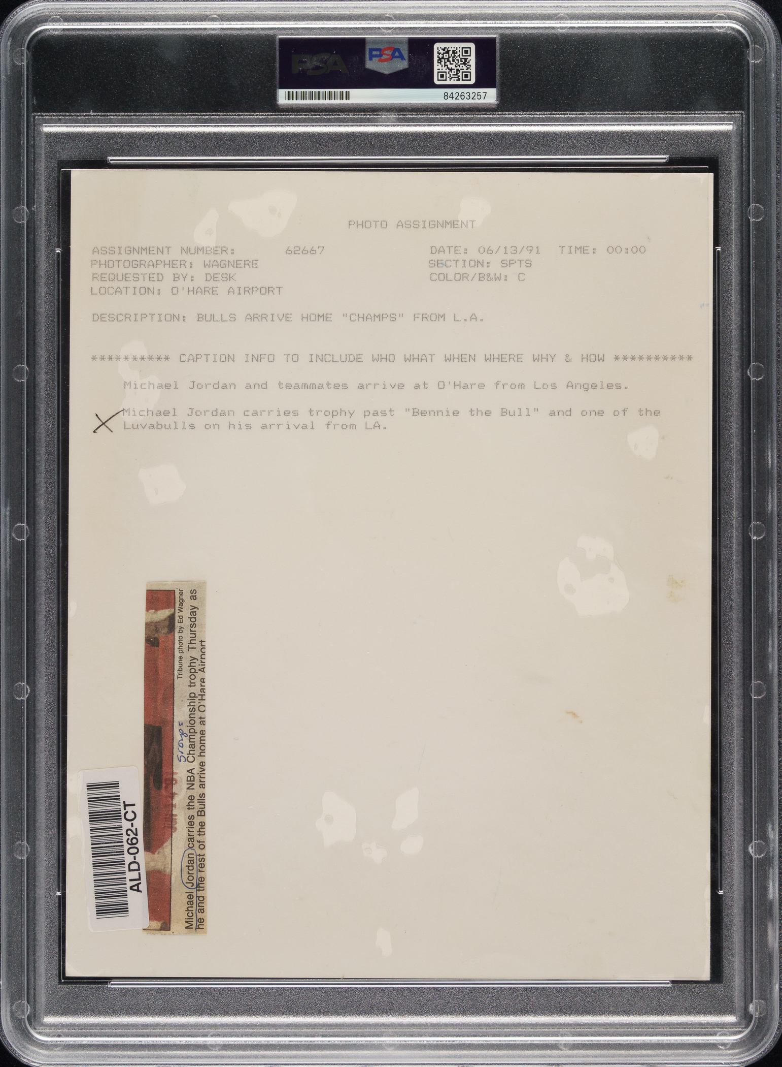 Encapsulated and certified as an original Type I photograph by PSA/DNA. Chicago Bulls Hall of Famer Michael Jordan. Dimensions: 8 x 10 inches.