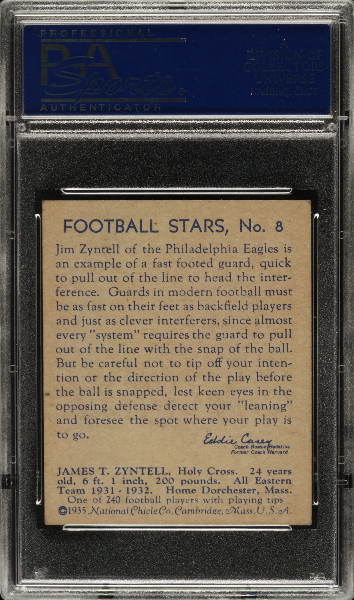Lot # 2440: 1935 R331 National Chicle Football #8 Jim Zyntell PSA EX 5