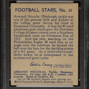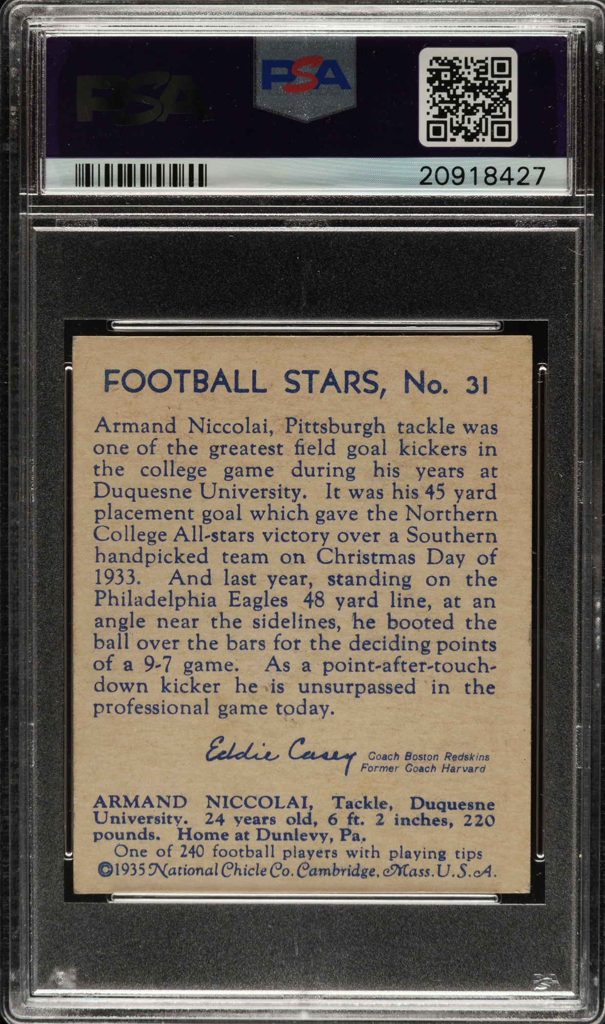 Lot # 2462: 1935 R331 National Chicle Football #31 Nic Niccolai High Number PSA EX-MT 6