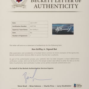 Seattle Mariners Hall of Famer Ken Griffey Jr. signed bat. Full LOA from Beckett. The size/weight of this item requires that there will be an additional shipping charge for this lot.