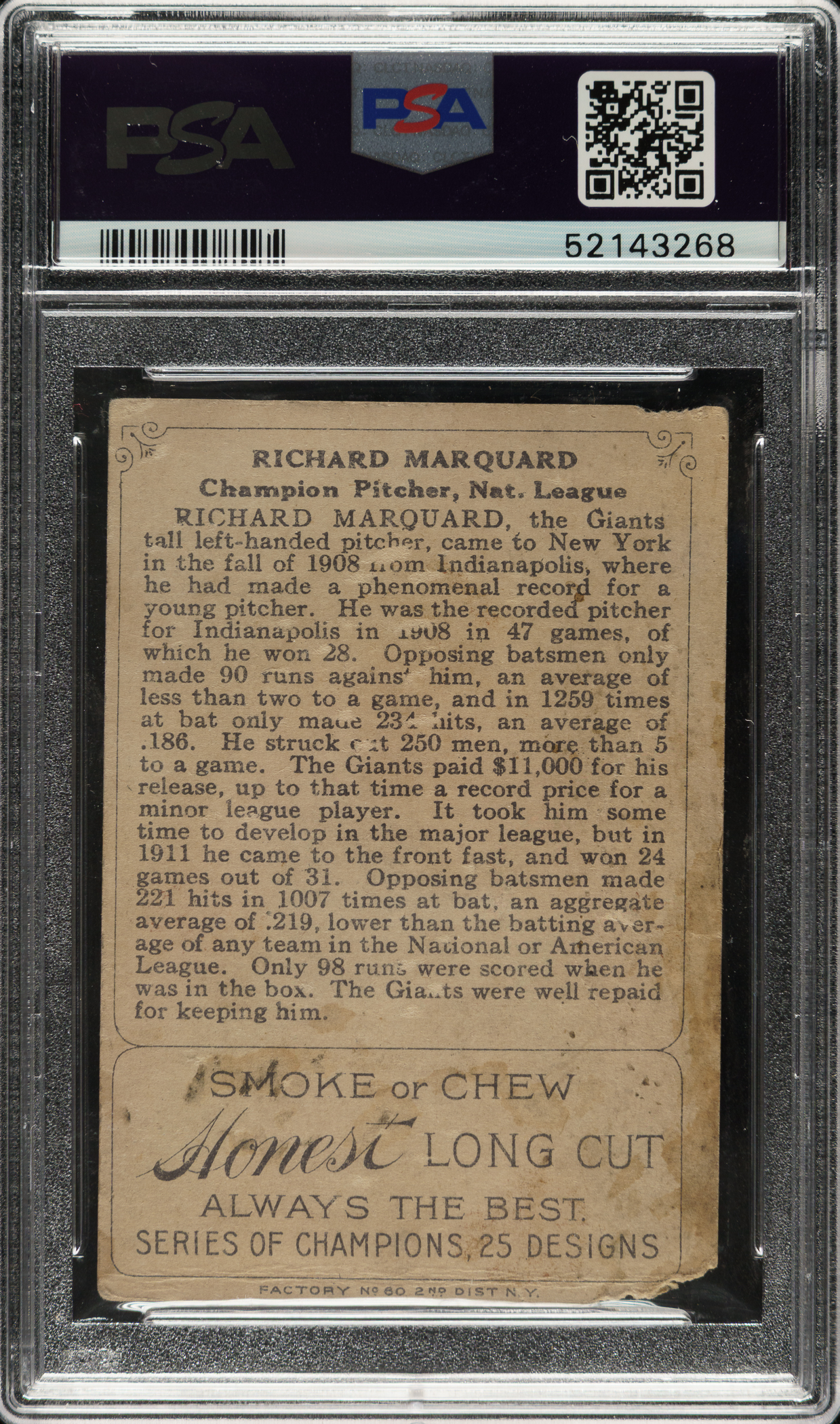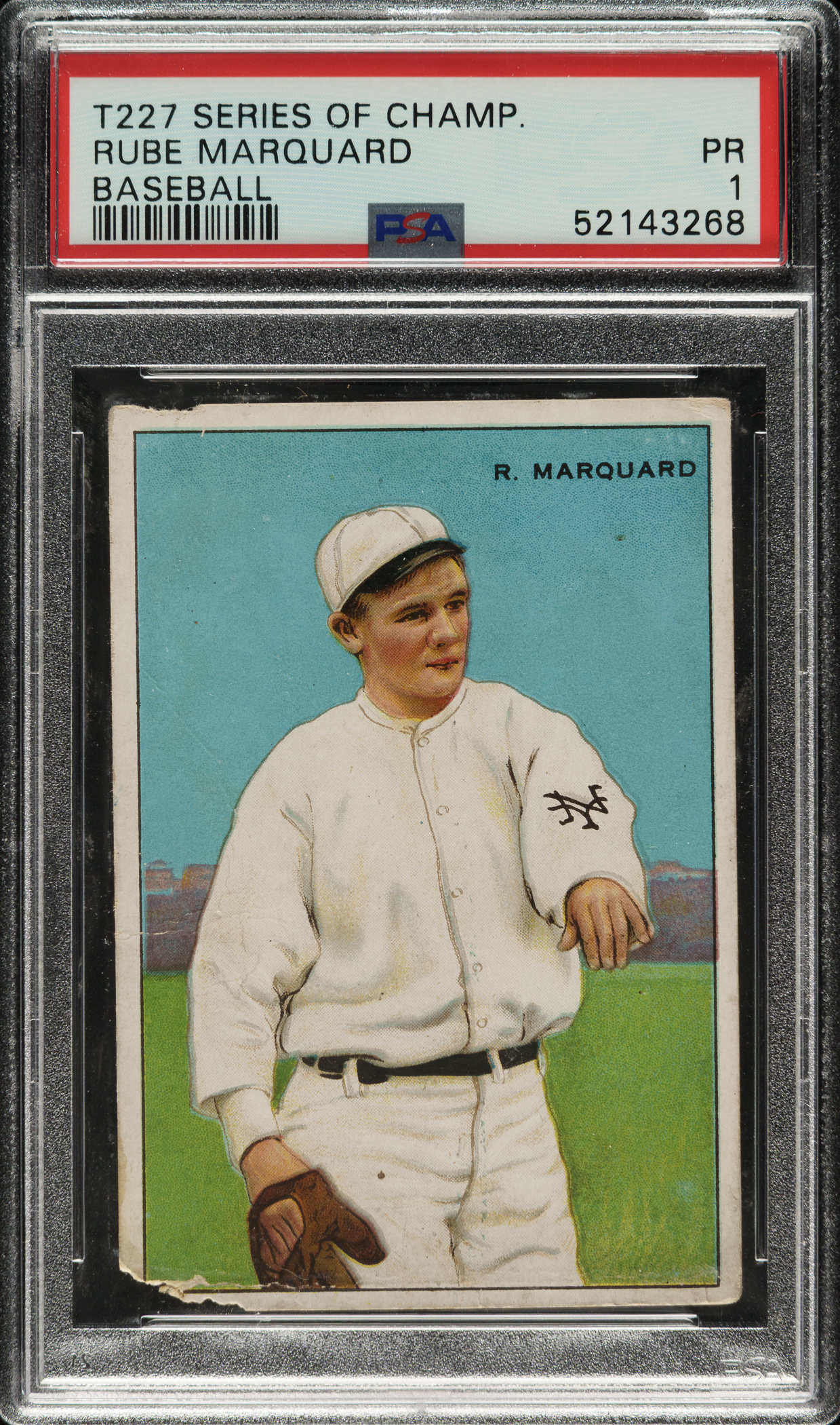 Graded POOR 1 by PSA. New York Giants Hall of Famer Rube Marquard.
