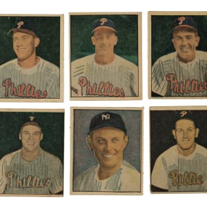 Presented is a collection of ten 1951 Berk Ross cards, highlighted by Stan Musial and Ralph Kiner. Condition is Pr overall due to pinholes, including one Vg. This collection consists of the following: #1-10, 2-1 Musial (Pr due to pinholes), 2-3, 2-6, 2-7, 2-8, 3-1 Kiner (Vg), 3-8, 4-1, and 4-7. Total: 10 cards.