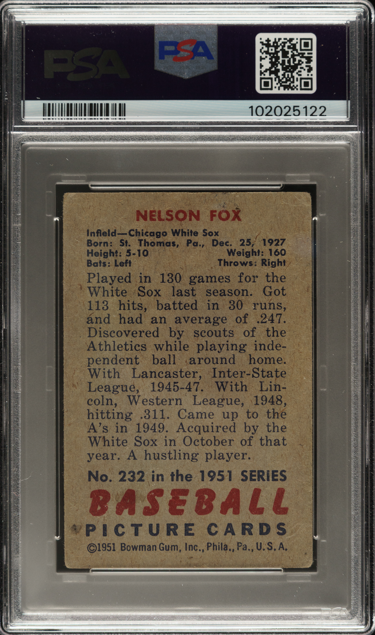 Graded GOOD 2 by PSA. Chicago White Sox Hall of Famer Nellie Fox.