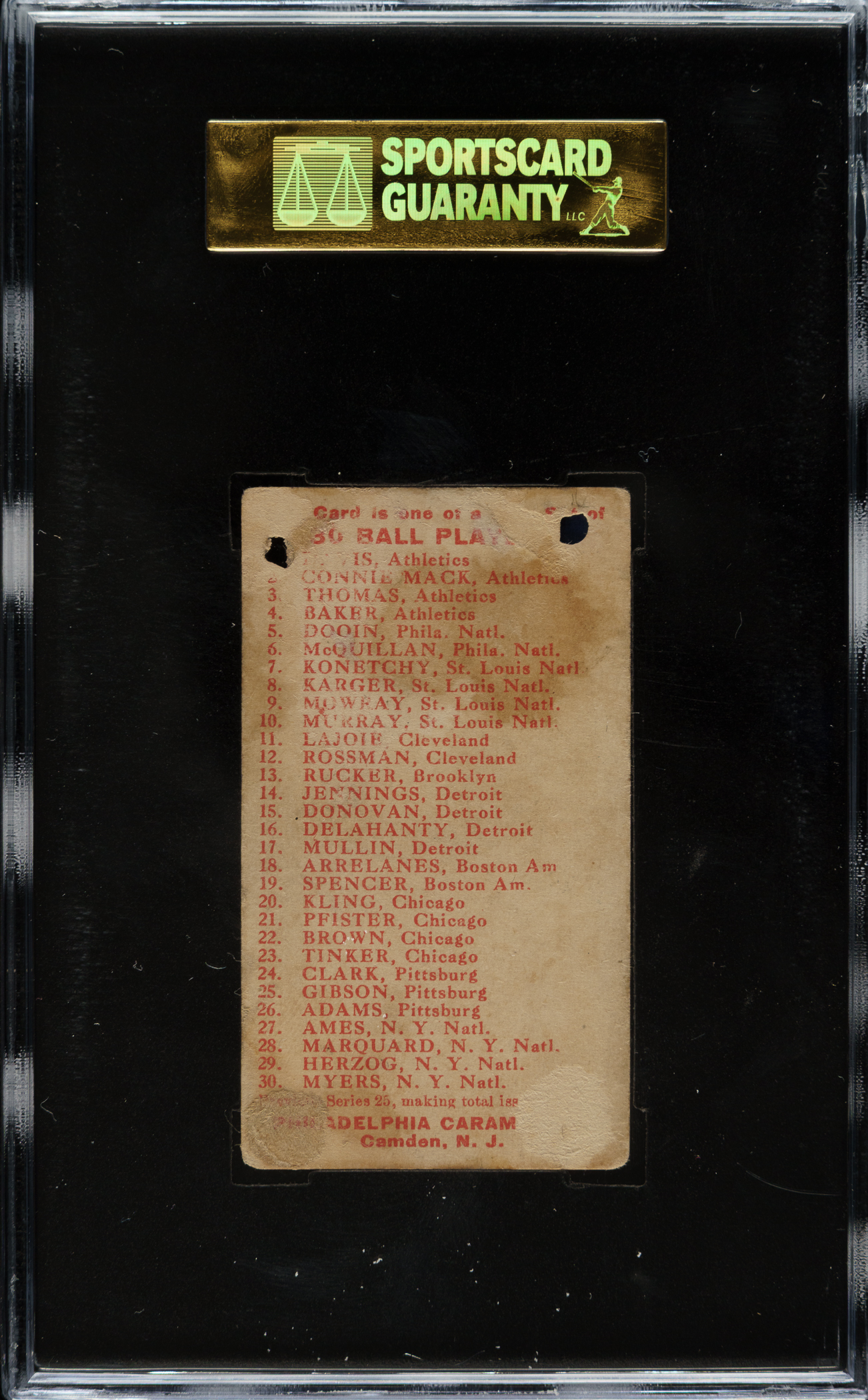 Lot # 1472: 1910 E96 Philadelphia Caramel Jim Delehanty SGC POOR 10
