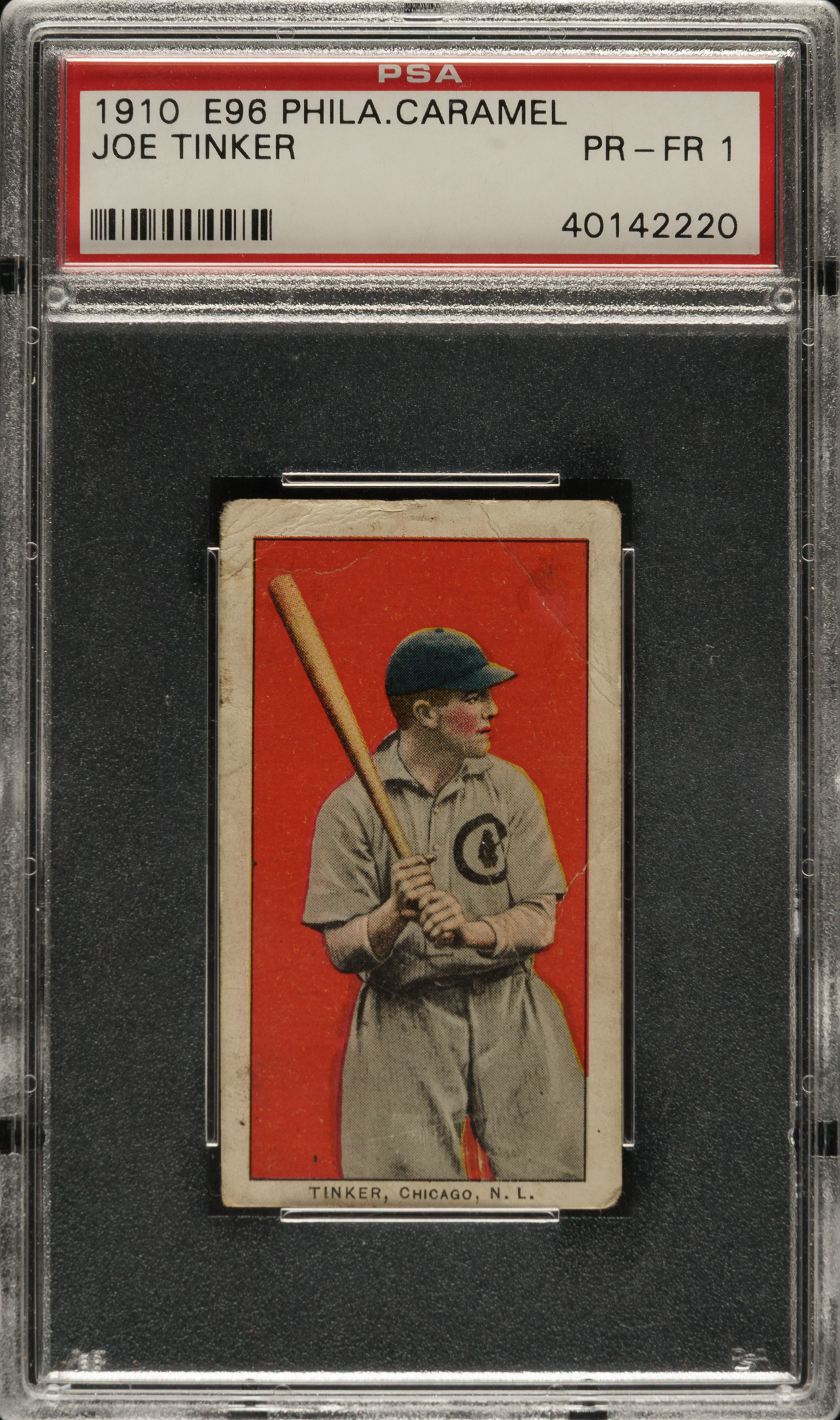 Lot # 1492: 1910 E96 Philadelphia Caramel Joe Tinker PSA POOR 1