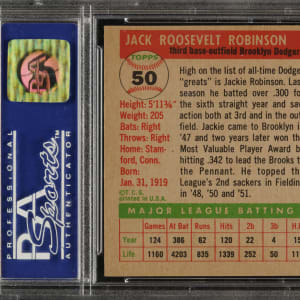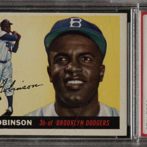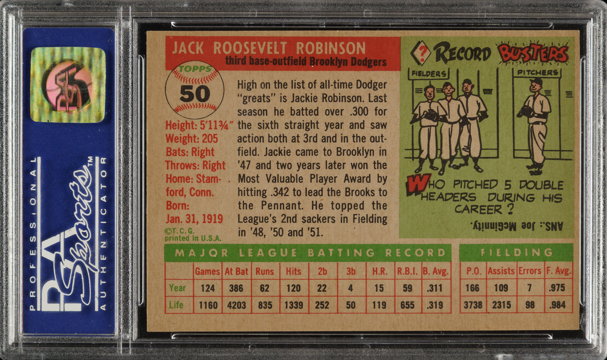 Graded NM-MT 8 (OC) by PSA. Brooklyn Dodgers Hall of Famer Jackie Robinson.
