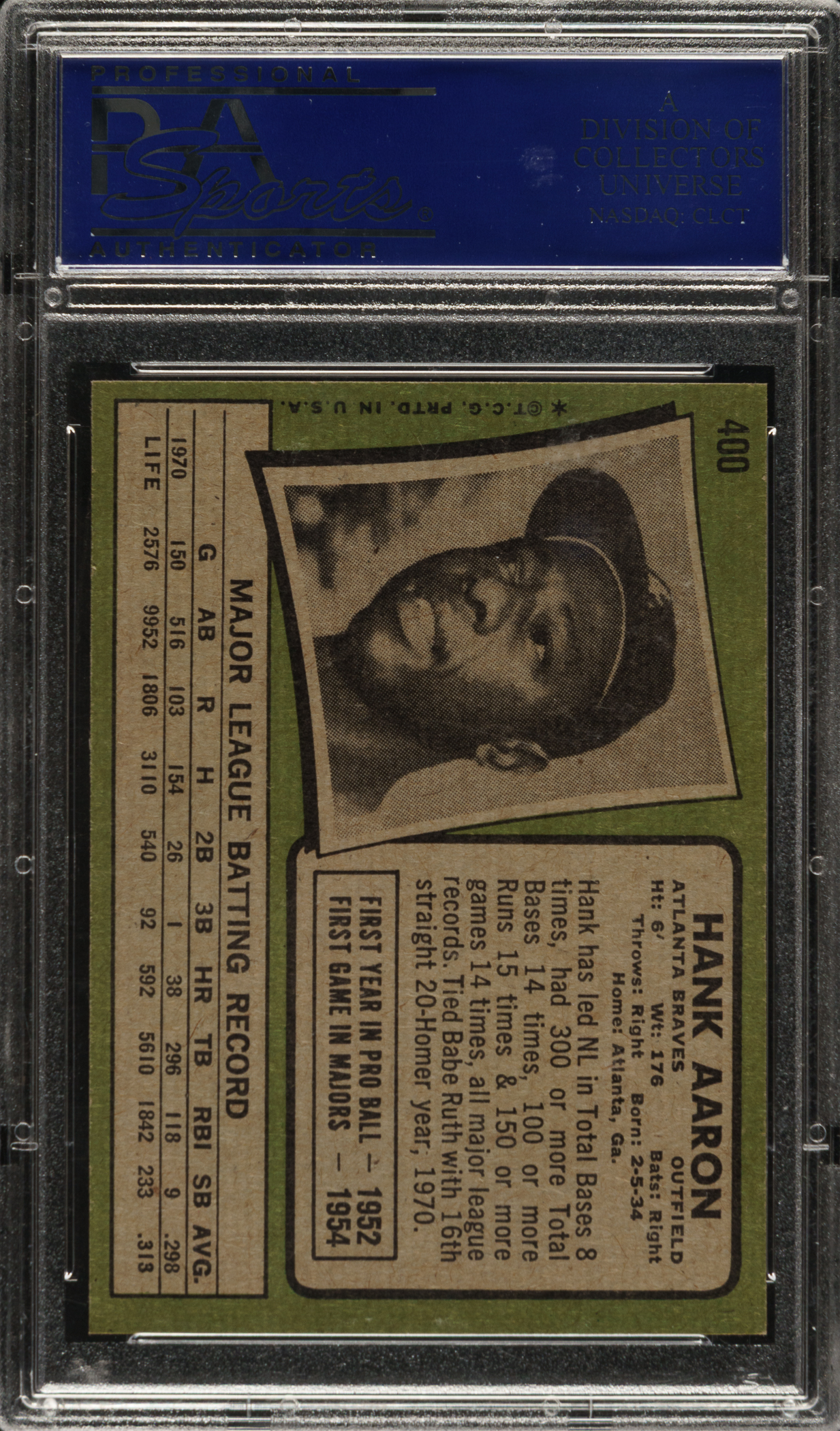 Lot # 3163: 1971 Topps #400 Hank Aaron PSA NM-MT 8