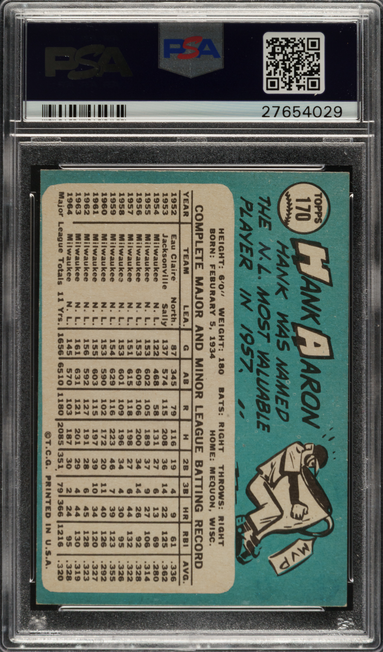 Graded NM-MT 8 by PSA. Milwaukee Braves Hall of Famer Hank Aaron.