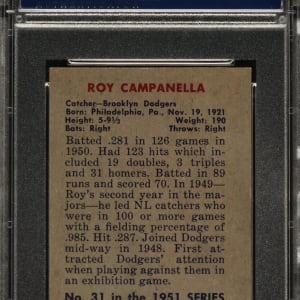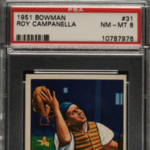 Graded NM-MT 8 by PSA. Brooklyn Dodgers Hall of Famer Roy Campanella.