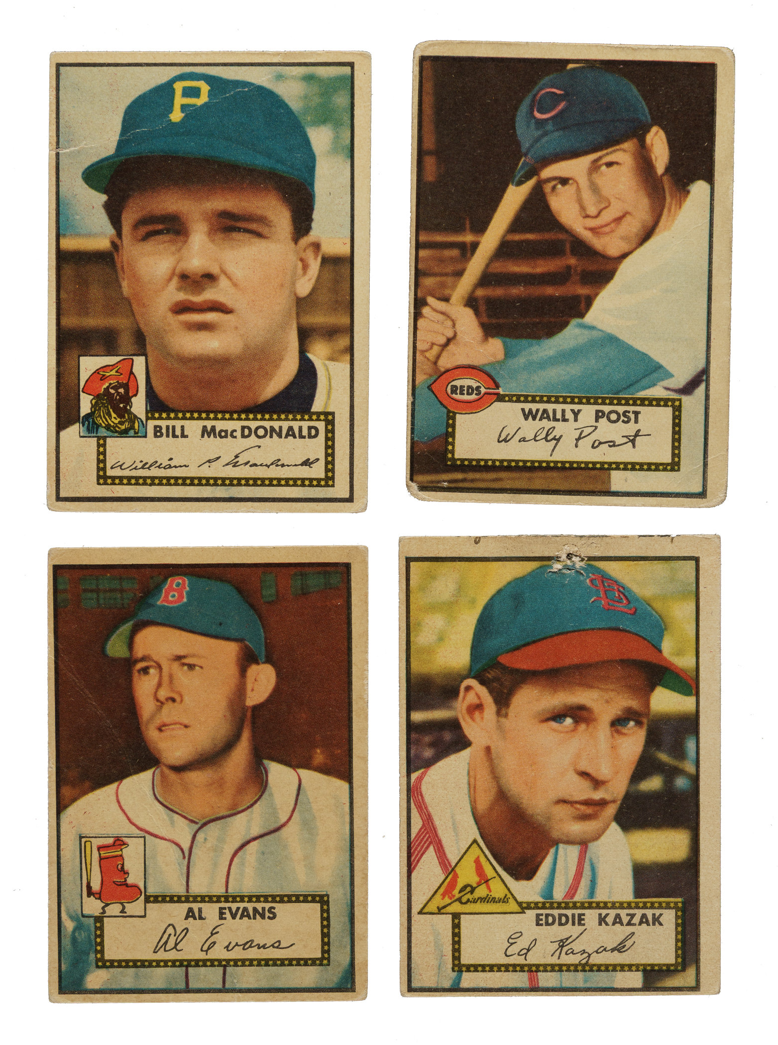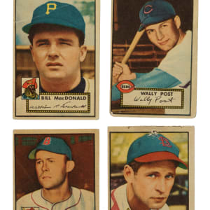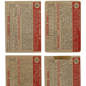 Collection of four 1952 Topps "Canadian" Gray Back cards. This collection consists of the following: #138 (Pr, tear), 151 (Pr), 152 (Pr), and 165 (Pr). Total: 4 cards.