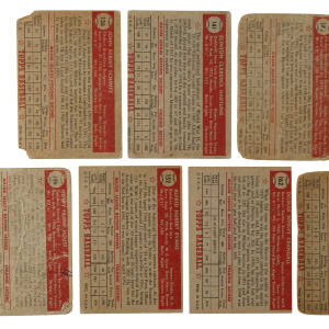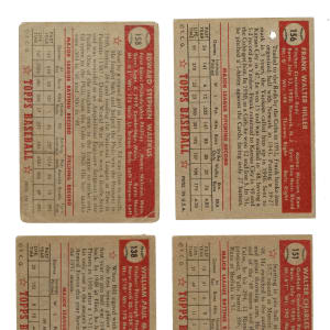 Collection of eleven 1952 Topps "Canadian" Gray Back cards. Condition is Pr overall, including one Gd+ and one with 0/100 centering, otherwise Ex. This collection consists of the following: #136, 138, 141, 145, 146, 151, 152, 156, 158, 162, and 165. Total: 11 cards.