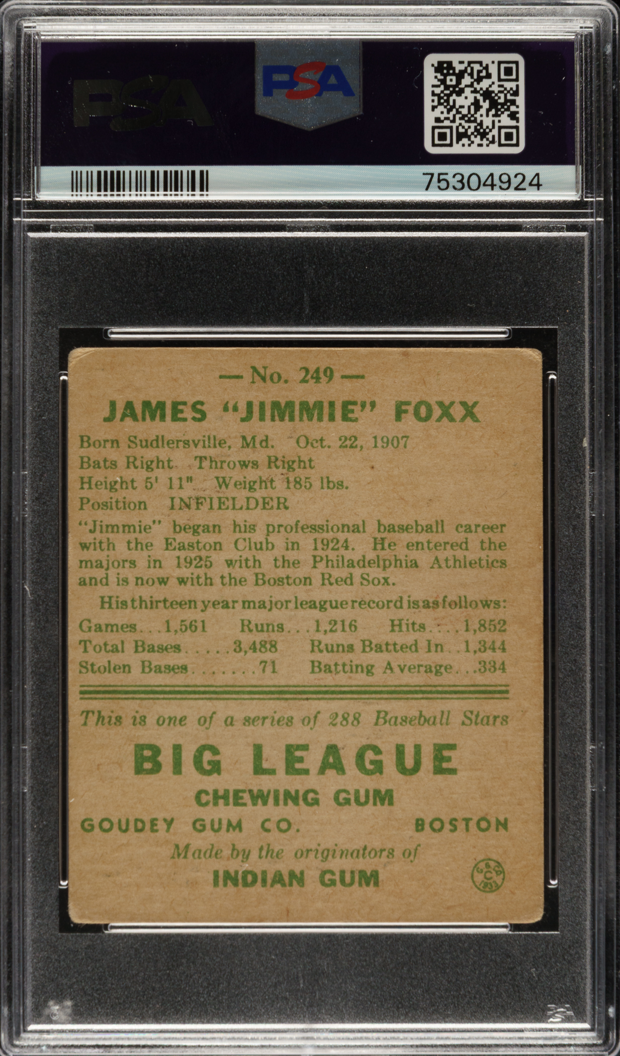 Graded GOOD 2 by PSA. Boston Red Sox Hall of Famer Jimmy Foxx.