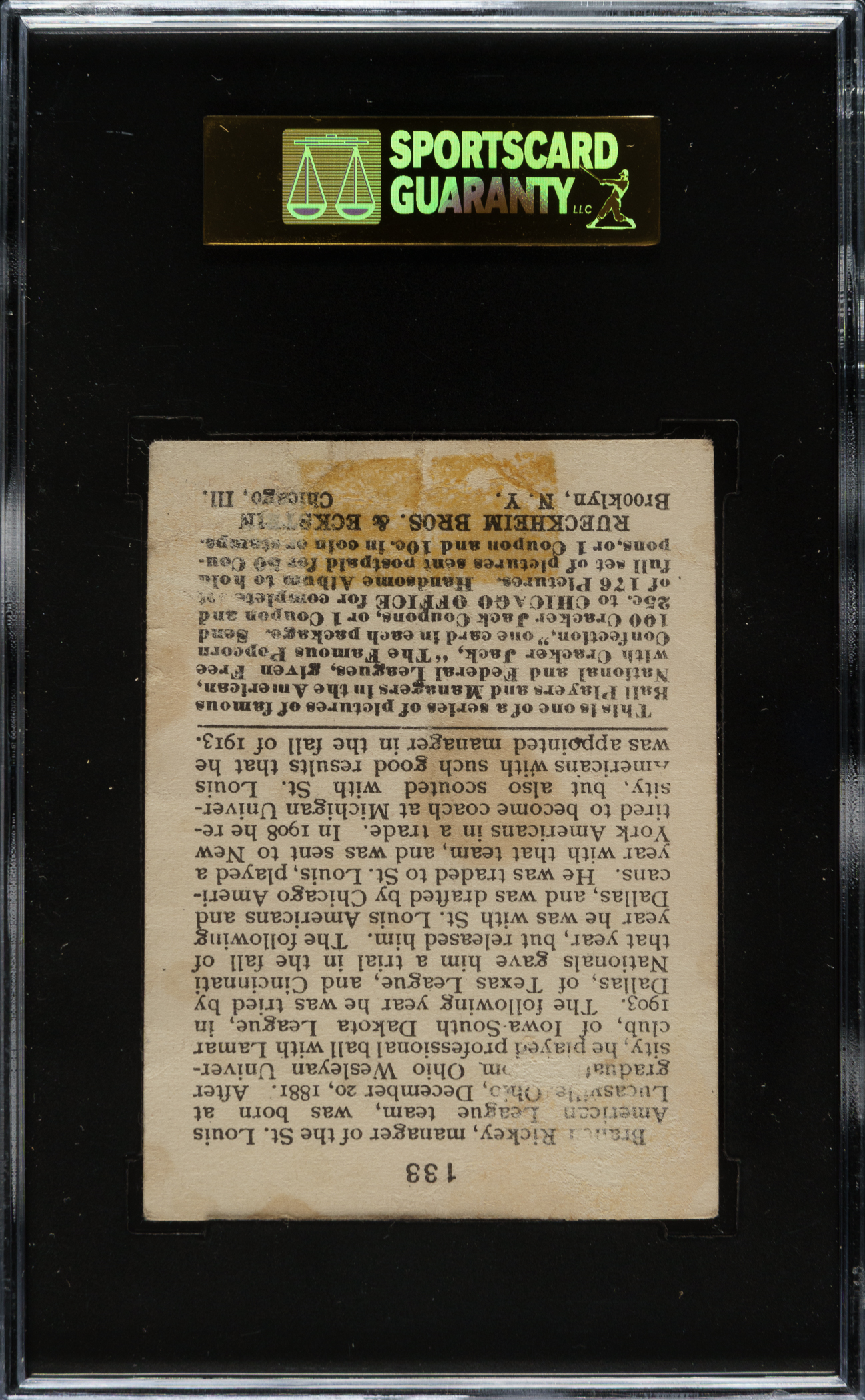 Graded POOR 10 by SGC. St. Louis Browns Hall of Famer Branch Rickey.
