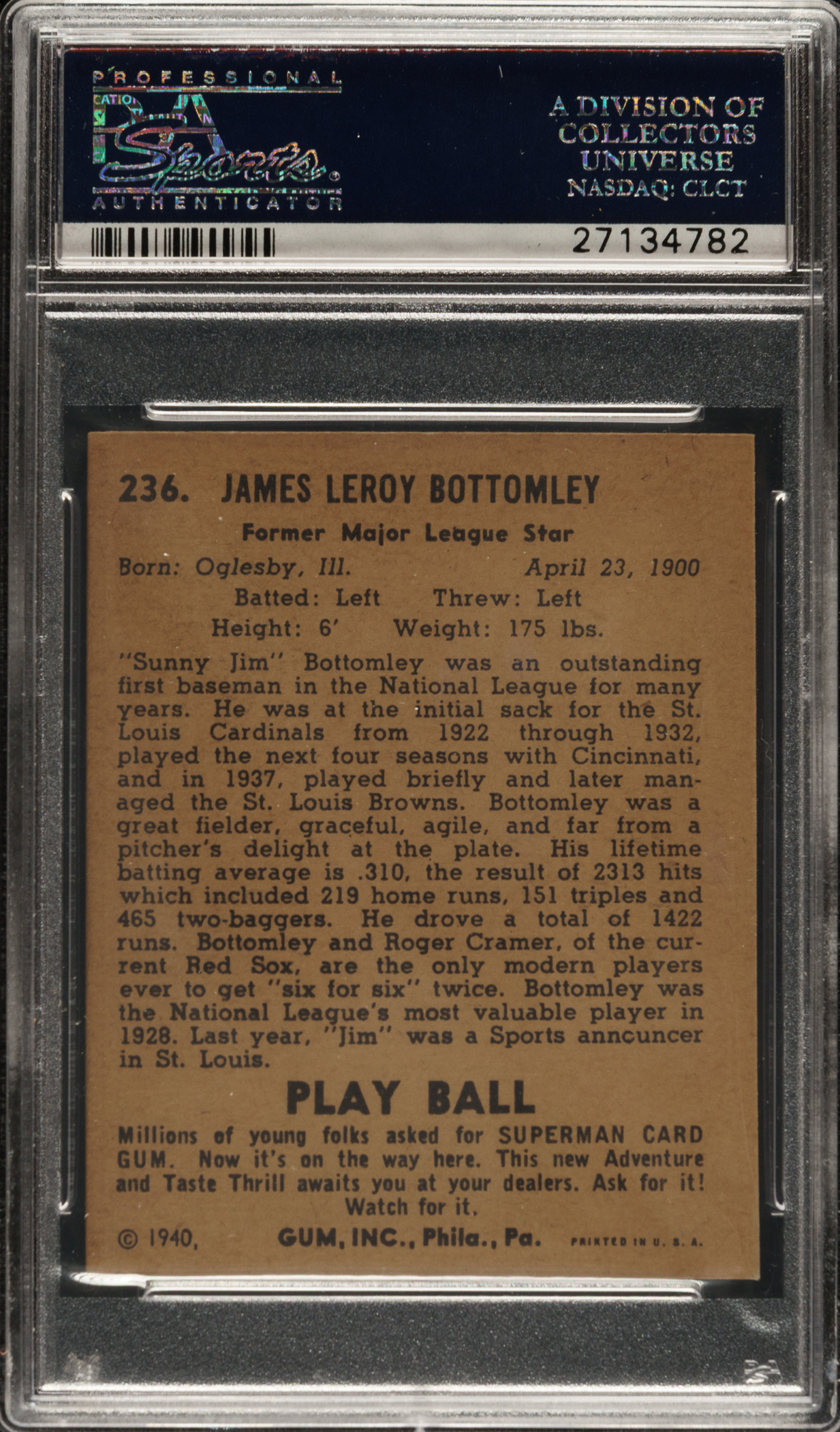 Graded EX-MT 6 by PSA. St. Louis Browns Hall of Famers Jim Bottomley.