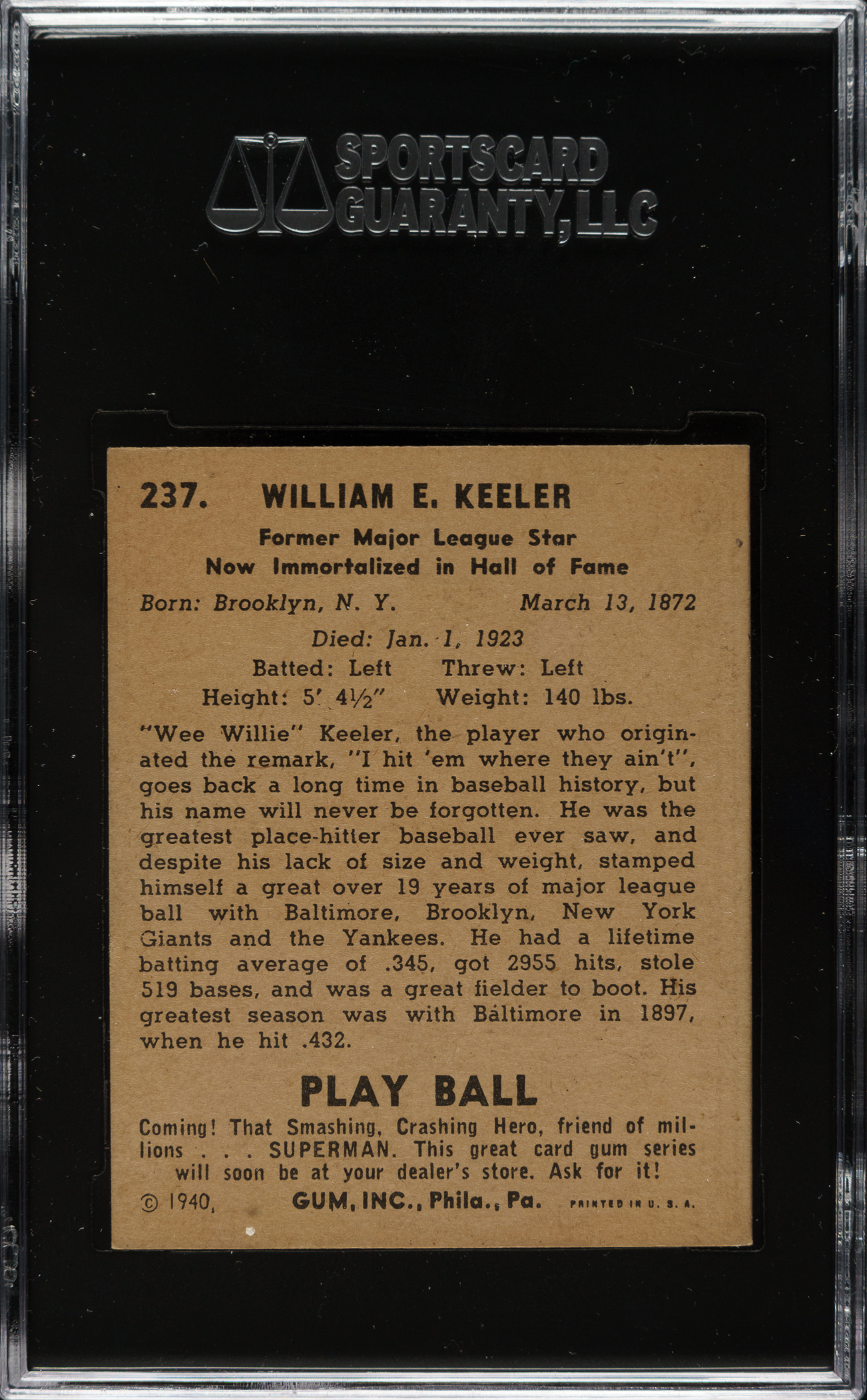 Graded NM 7 by SGC. New York Yankees Hall of Famer Willie Keeler.