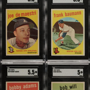 Collection of four 1959 Topps cards, each graded and encapsulated by SGC. This collection consists of the following: #64 (EX+ 5.5), 161 (EX+ 5.5), 249 (EX+ 5.5), and 388 (EX 5). Total: 4 cards.