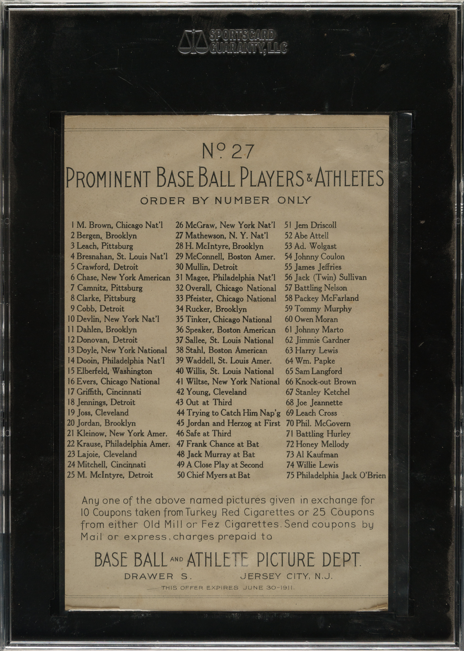 Encapsulated as "Authentic" by SGC due to being trimmed on multiple edges. New York Giants Hall of Famer Christy Mathewson.