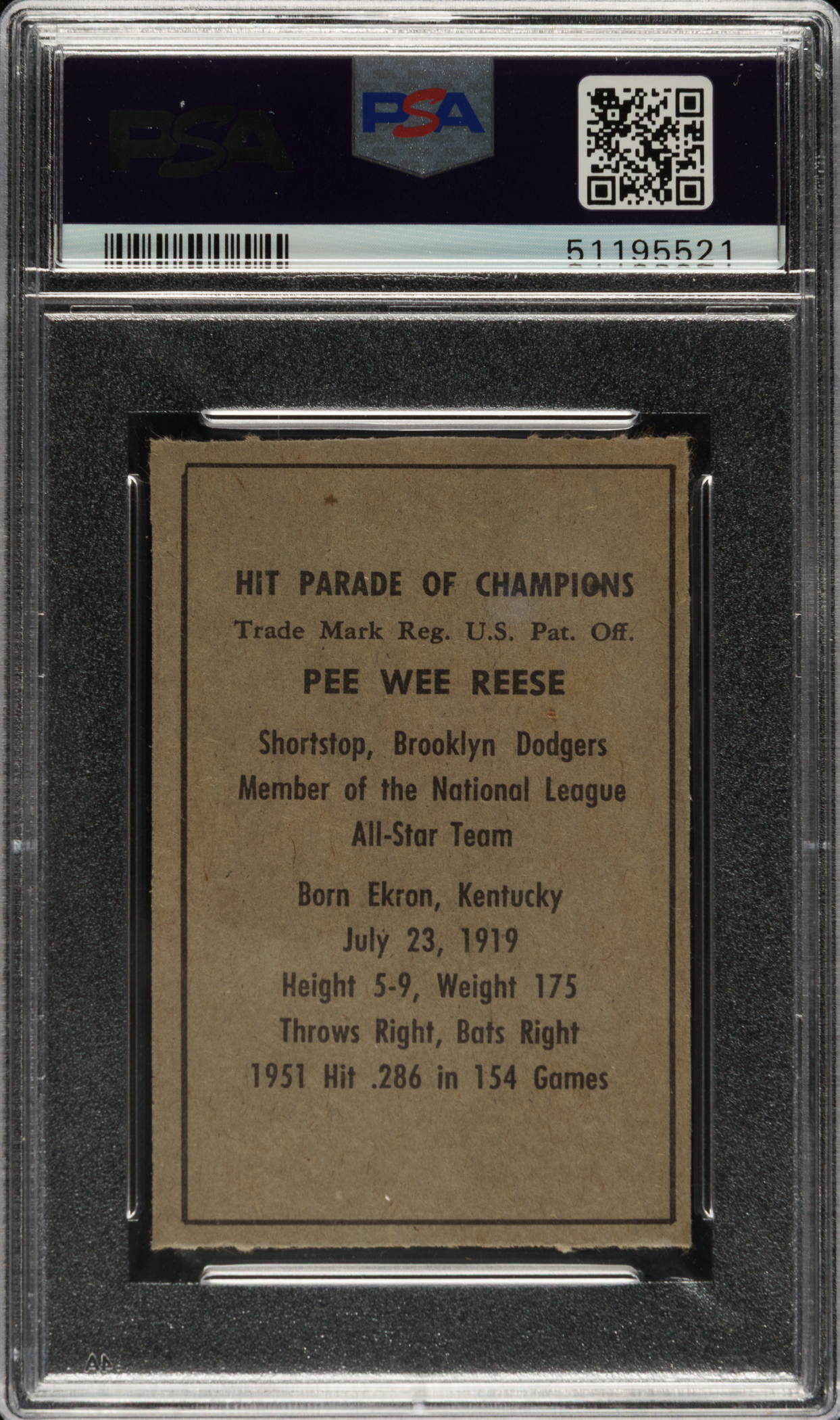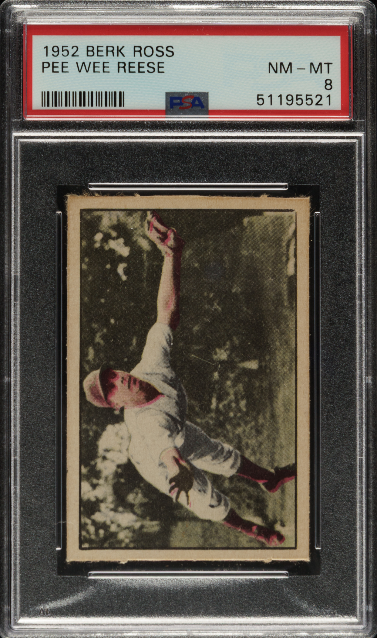 Graded NM-MT 8 by PSA. Brooklyn Dodgers Hall of Famer Pee Wee Reese.