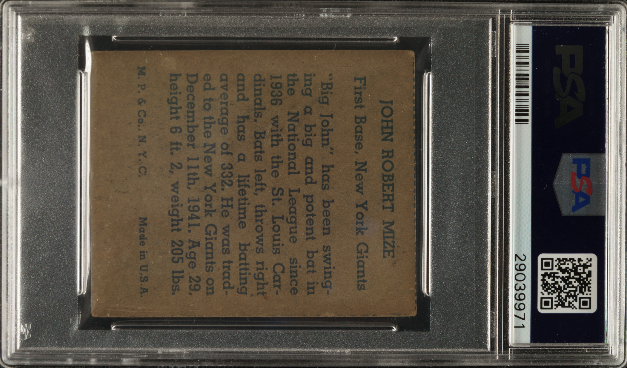 Graded GOOD 2 by PSA. New York Giants Hall of Famer Johnny Mize.